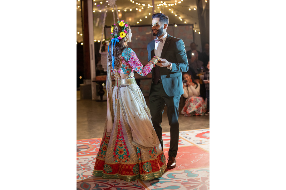 Arahna’s lehenga was unusual and playful, with tassels and pompoms, while Yuval kept it classic in an all-black ensemble.