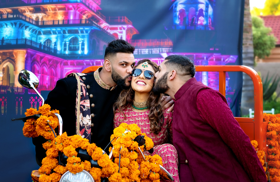 Yuval’s Hurdhee was held a few days later in an intimate, poolside function at his home. The event had a live “roti and chai” station, with quirky props and a beautiful Jaipur inspired backdrop.