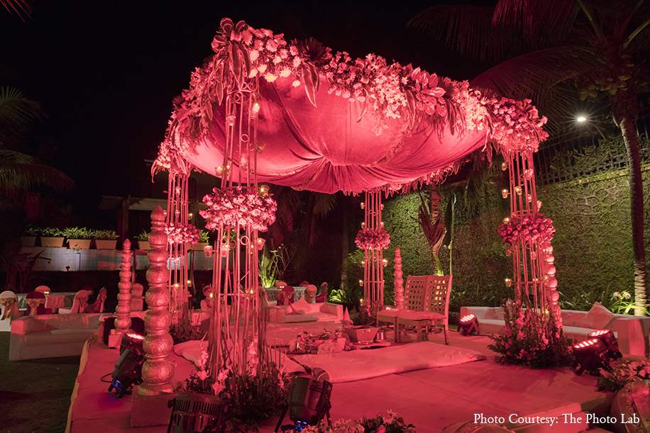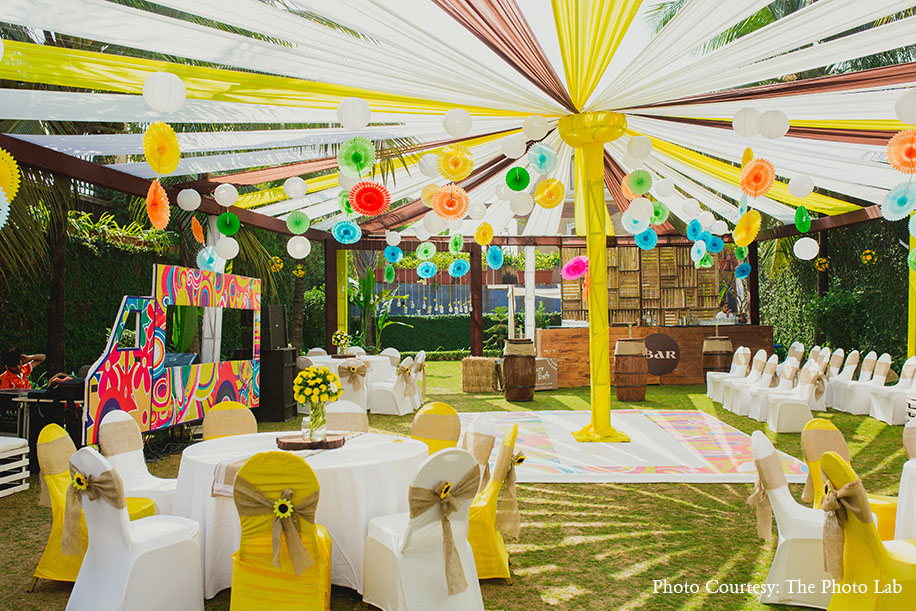 “The first day of the event included the mehndi and ‘sagan’ (engagement) ceremonies and the decor had a vibrant ‘mela’ (fair/carnival) vibe with blue, yellow and white shades used across all decor elements. The beautiful colors and interesting accents added a touch of glitz to the proceedings.”