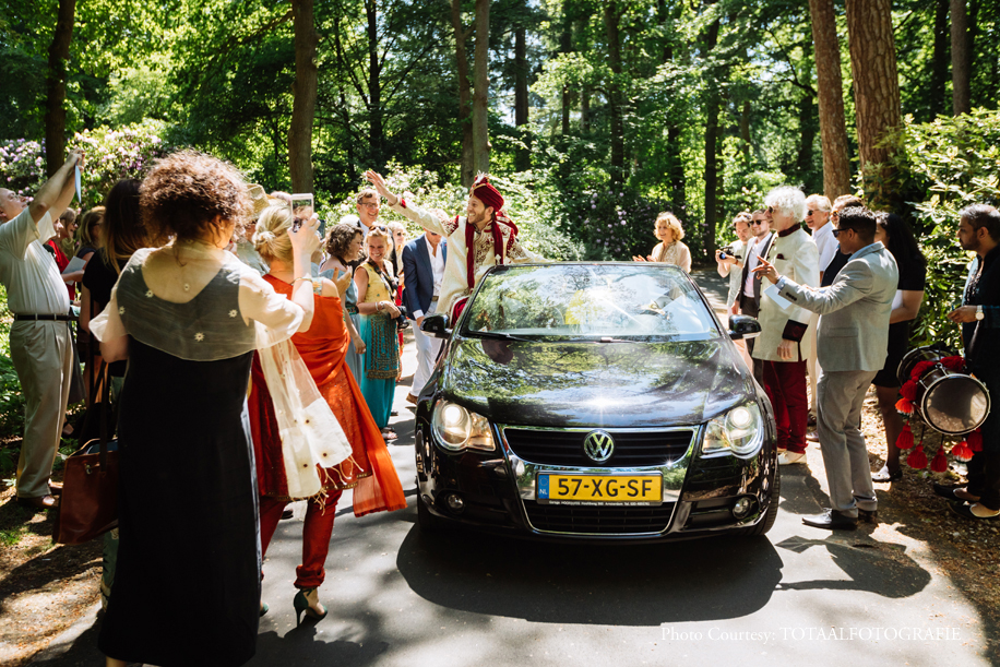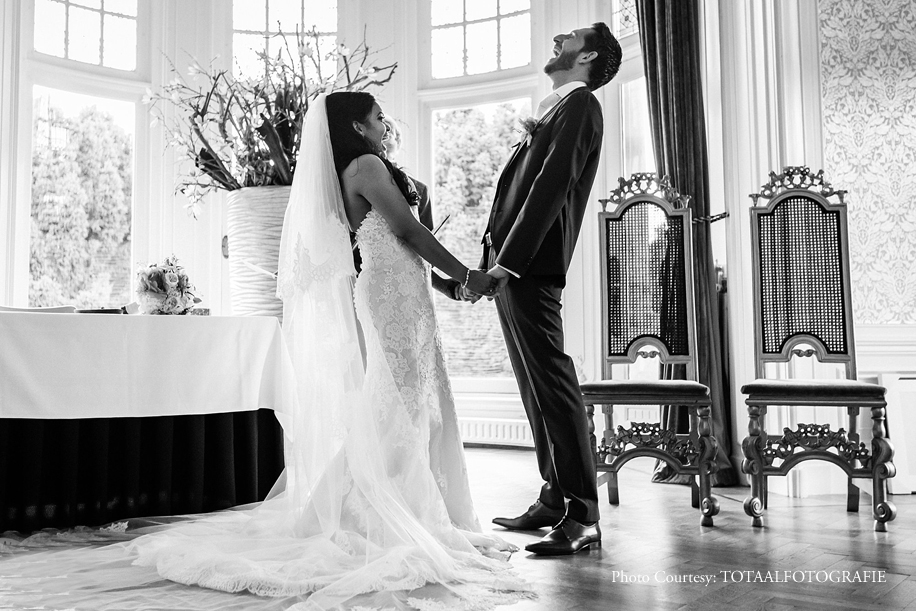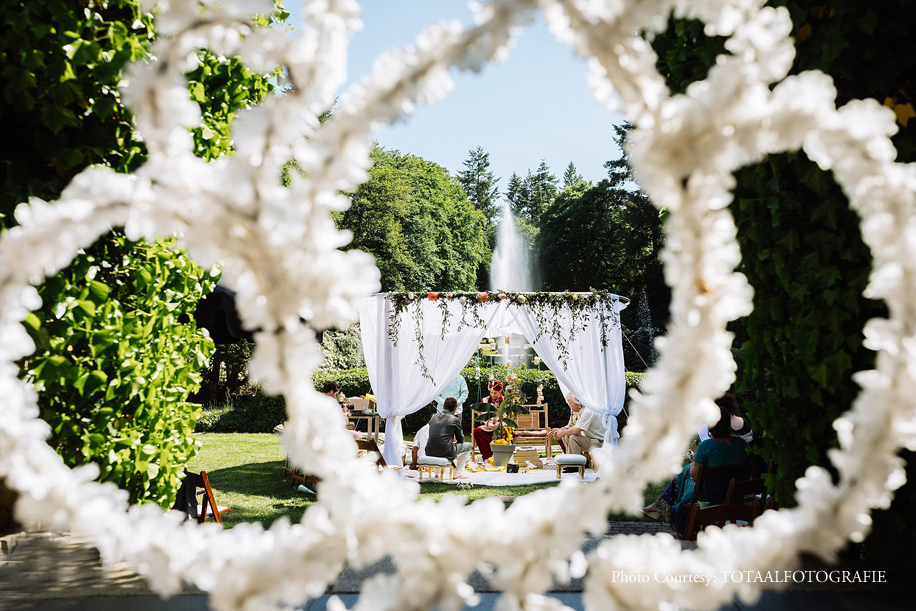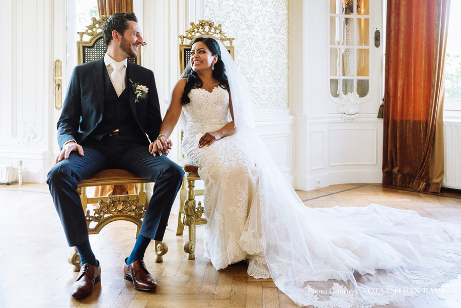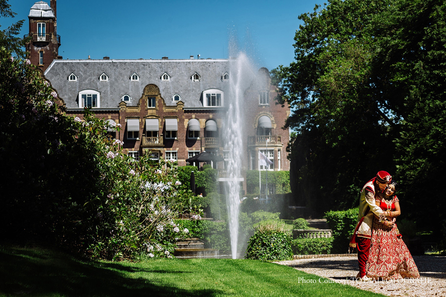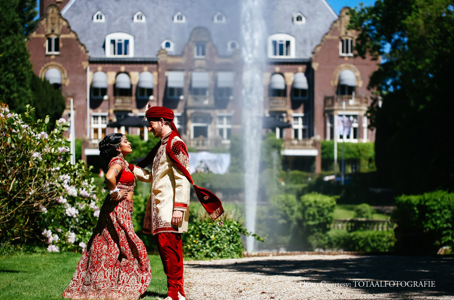 The couple wanted one venue at which they could host all their wedding functions. The ‘ Kasteel De Hooge Vuursche ’, surrounded by a beautiful garden with a glorious fountain was a perfect option. The castle even had enough room to accommodate their entire guest list; the perfect way for their diverse guests to bond at a multi-cultural wedding.