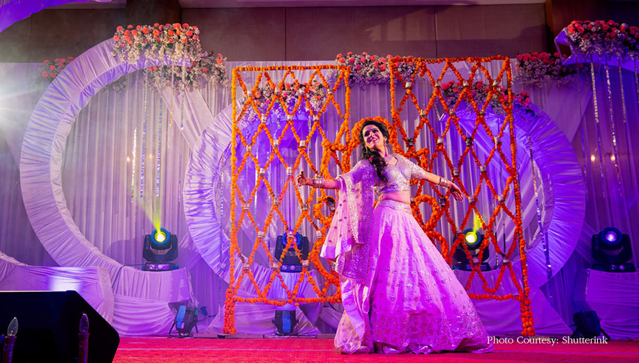 Mystical colors and twinkling lights create a magical ambiance for the sangeet.