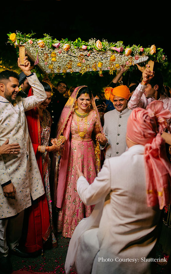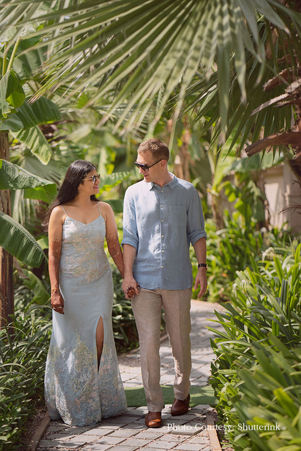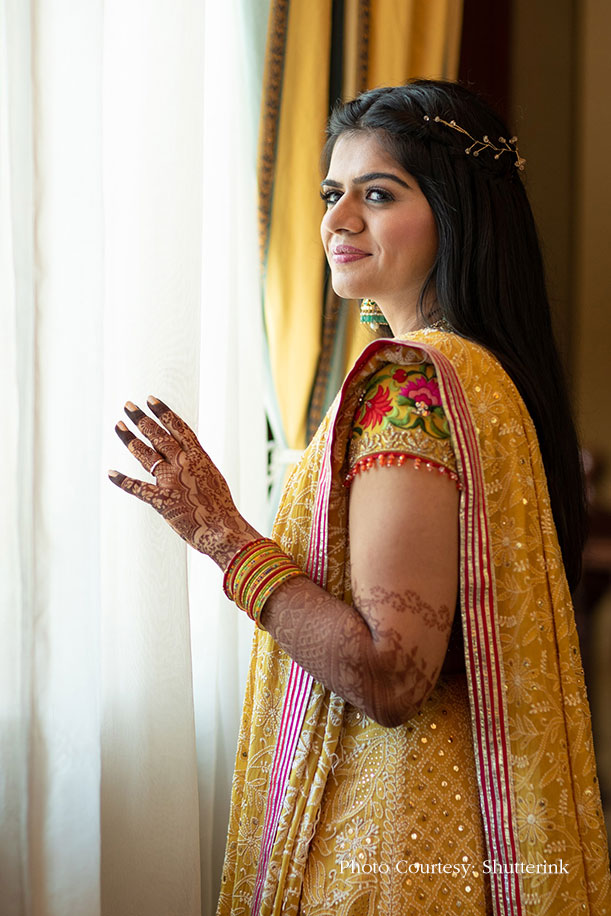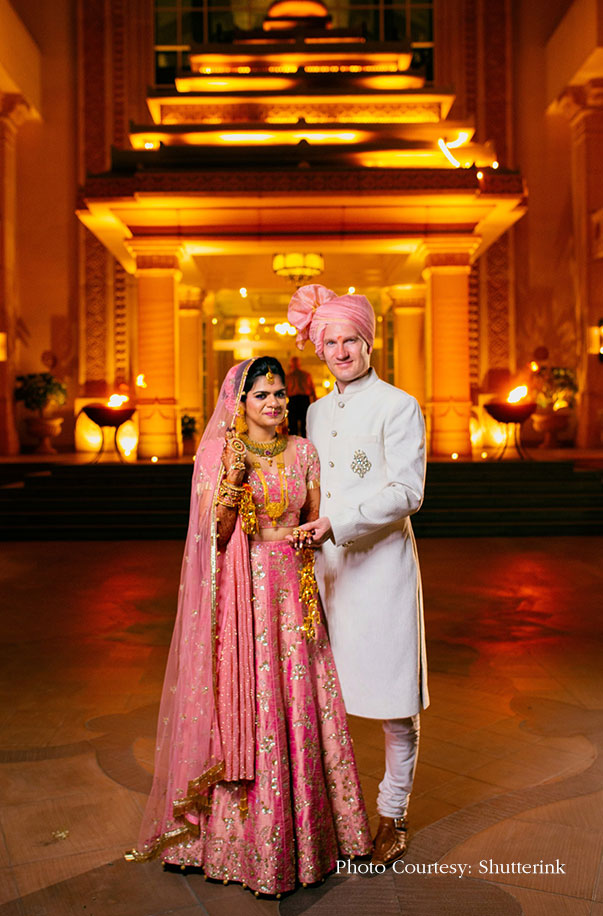 Aarushi and Erik’s wedding was designed to give their foreign guests a taste of authentic India. They hosted the festivities at the majestic ITC Grand Bharat in Gurugram, and each venue lent itself wonderfully to the mood of the functions. The bride gives us glimpses into her big day captured by WeddingSutra Favorite – Shutterink here.