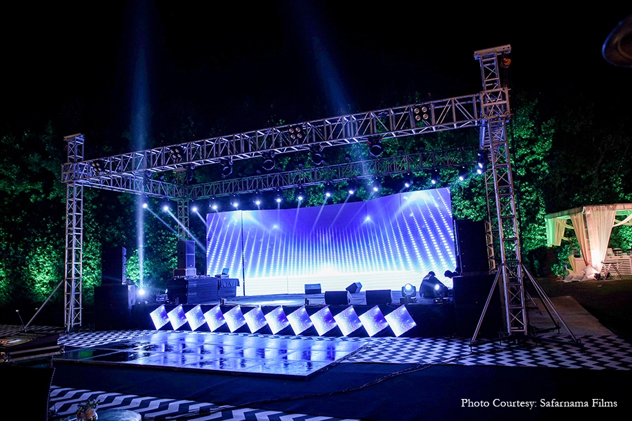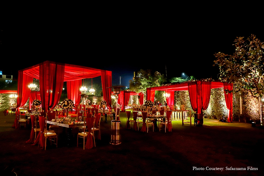 The couple opted for the verdant surroundings and vast spaces of Sanskriti Greens, Faridabad where they could play with their ideas and create themed decor from scratch. To execute their vision, they brought on board the team of Plush Weddings. Talking about their experience, they share, “Working with the team of Plush Weddings was an incredible experience. We connected with them instantly in the first meeting itself, and it felt like we were working with family. They made the entire experience so much fun!”.