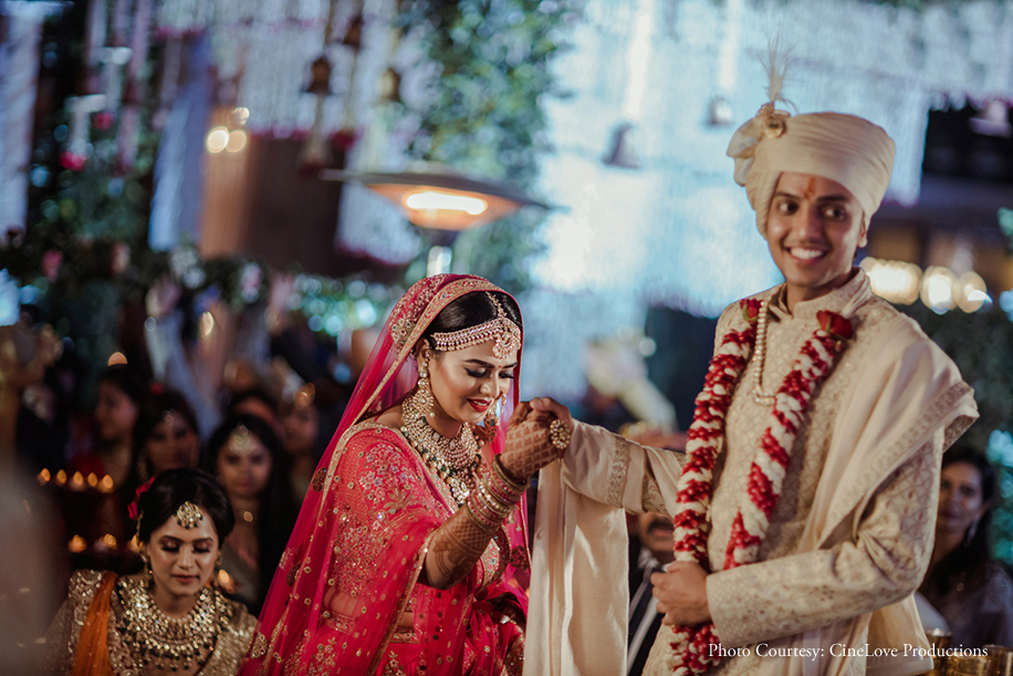 Brought together by a right swipe, Ayushi and Shubham’s arranged marriage has a unique twist of love in it. Even though they were set up by parents, this duo took matters into their own hands and decided to court each other for a couple of months before taking the plunge. Hosted at the plush ITC Maurya, their nuptials were a feast for the eyes. Captured by WeddingSutra Favorite – CineLove Productions, each shot captured the plethora of emotions everyone felt at each function.