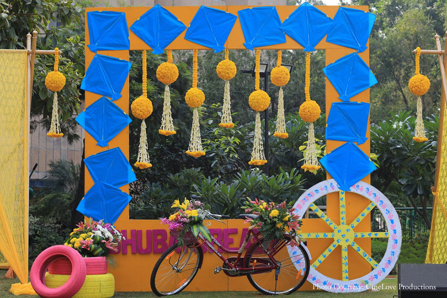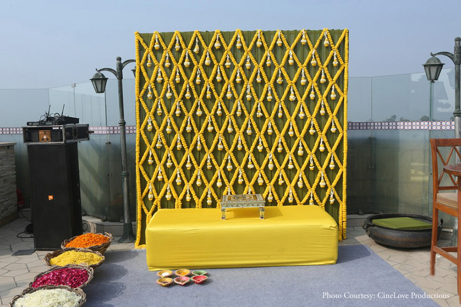 This bride’s rooftop haldi ceremony was a magnificent affair with its scenic views of the city and colorful decor.