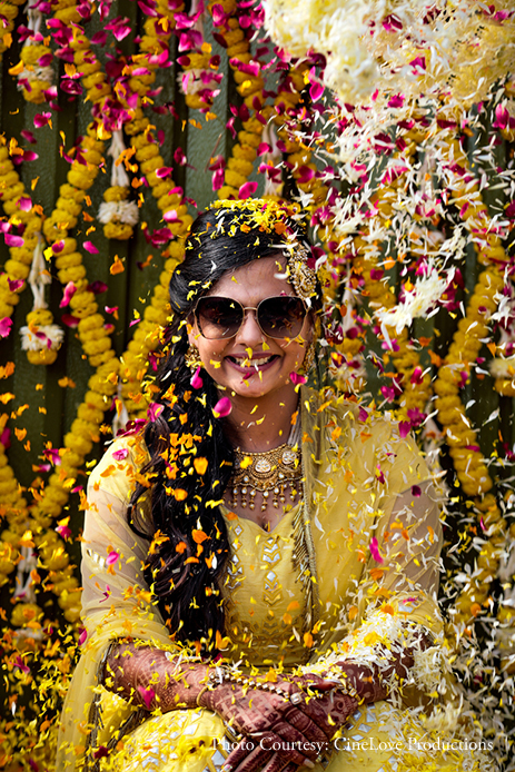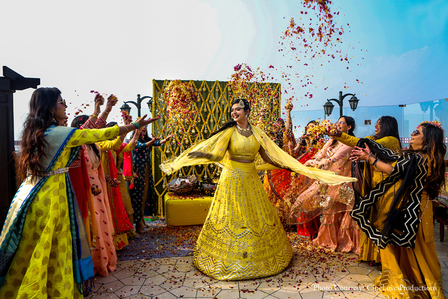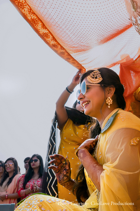 Dressed in a bright yellow lehenga with silver work, the bride kept it light and breezy as she twirled around in joy.