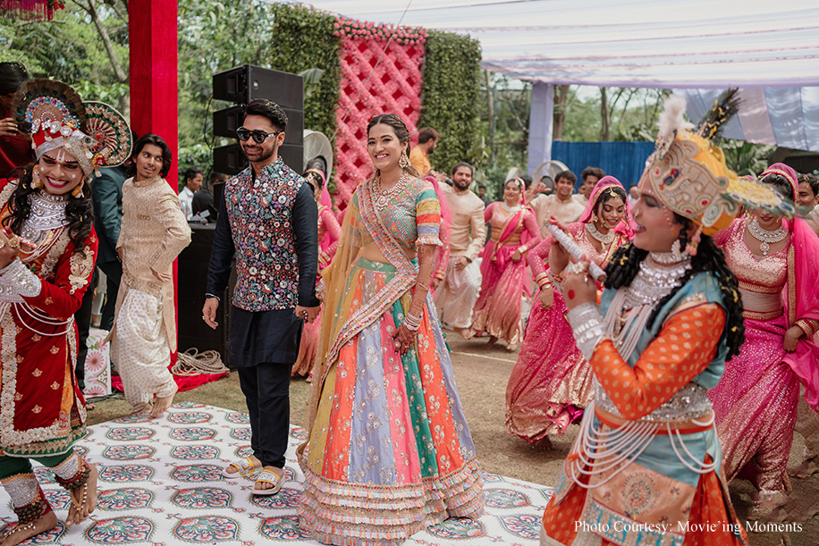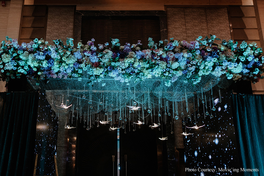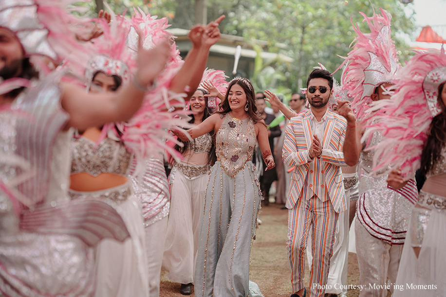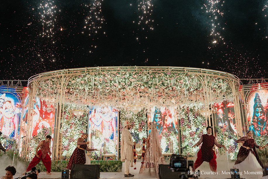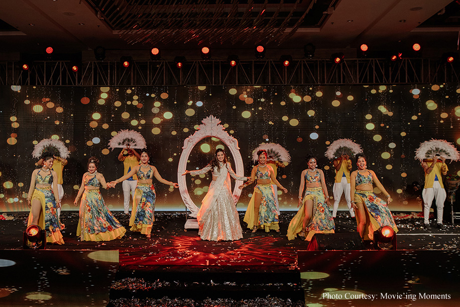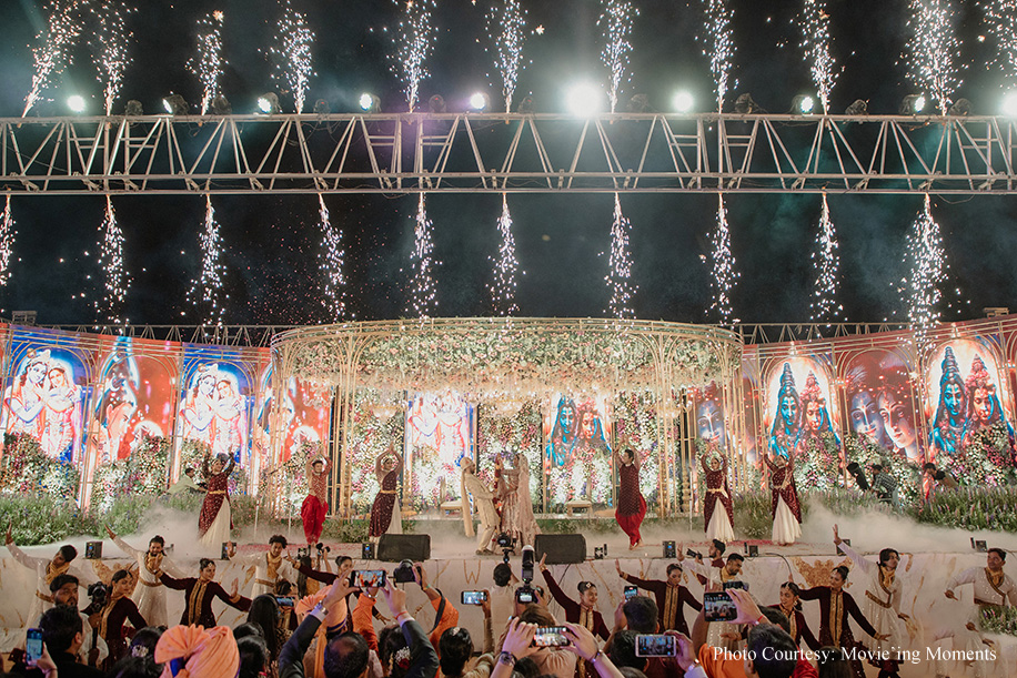 For us, the grand varamala was the highlight of the wedding as it was a magical ceremony where everyone was mesmerized by the opulence. No one took their eyes off the stage for twenty minutes straight! The couple and their families were our first priority. Consequently, we ensured everything was up to the mark, right from the song selection to the internal team members who worked on this wedding.” On the choreography front, WeddingSutra Favorite – Dhawal Doshi was at their creative best as they orchestrated an incredibly eye-catching entry for the couple during their sangeet. Every aspect was carefully curated and the team ensured that the couple was the centre of attention at all times.