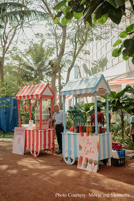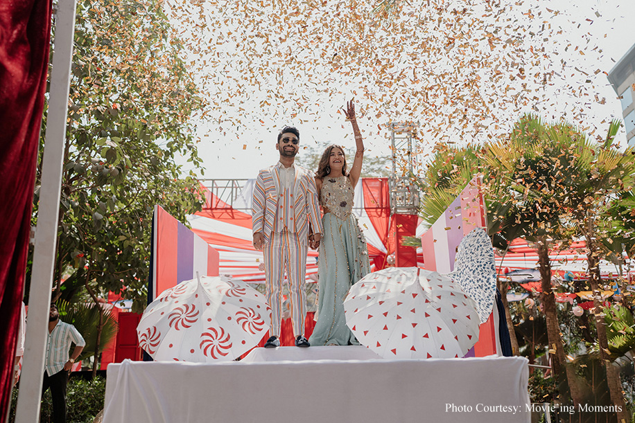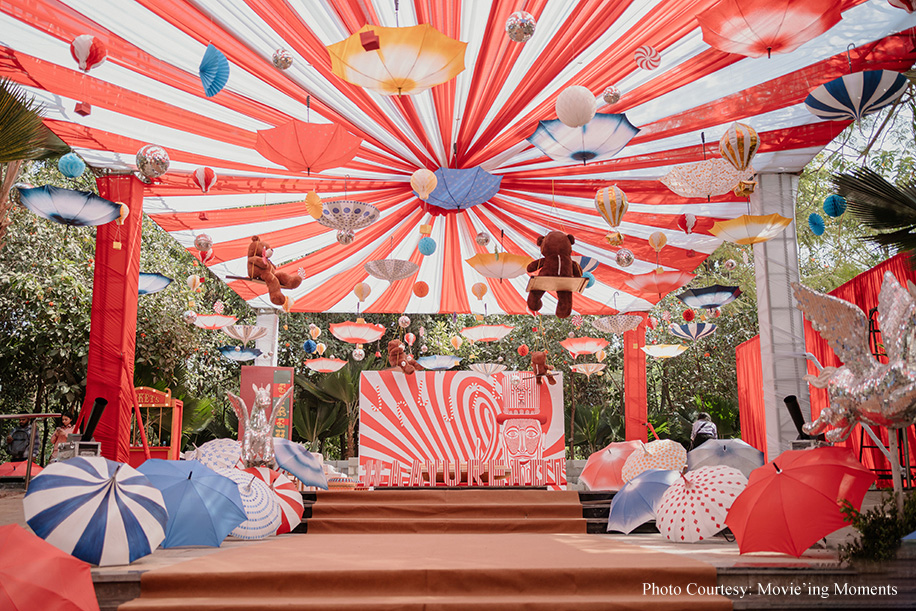 Ashique shares, “The Circus of Love is a strong theme that amuses all styles and ages, whether you want to take the romantic route or opt for something trendy and modish! The bold decor with parasols, gola counters, a bright striped canopy and exotic Circus artists had everyone awestruck. The couple made a stunning entry with their swanky costumes and professional artists. Plus, a DJ ensured everyone had an energetic time on the dance floor!”