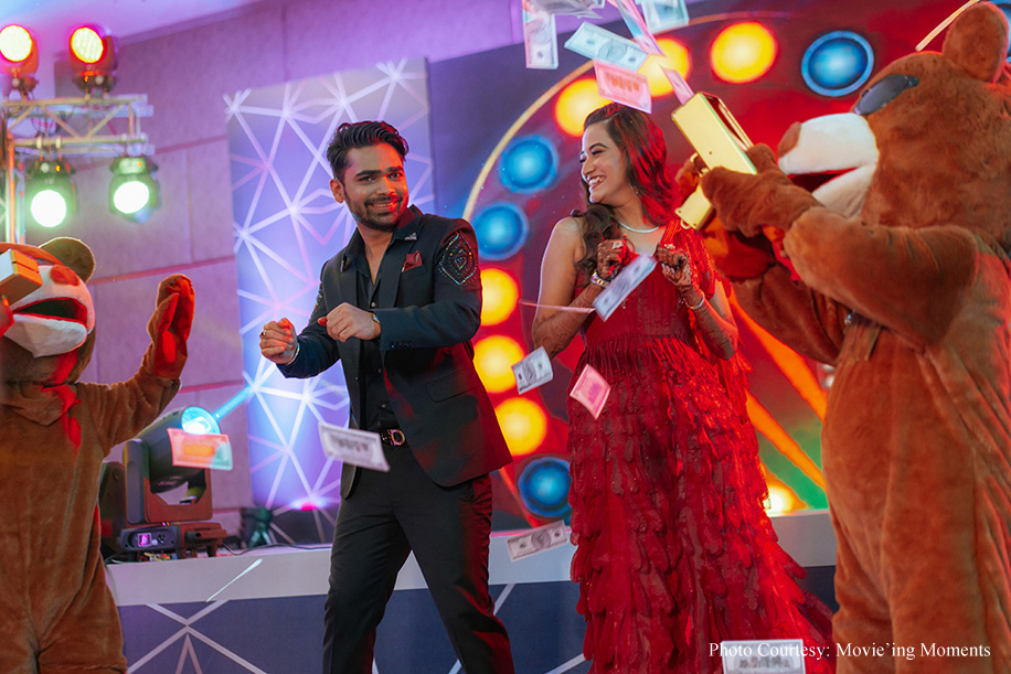 The Toy Room Party was a youthful and glamorous celebration at heart with its immersive nightlife experience. Harsh shares, “Inspired by the renowned Toy Room Club, we conceptualized a vibrant celebration. Playful decor, sleek entertainers and groovy music ensured the dancefloor was occupied at all times. The couple made a dashing entry with Teddy Bear Mascots, that everyone associated the Toy Room with and the guests enjoyed a plethora of interactive games.”