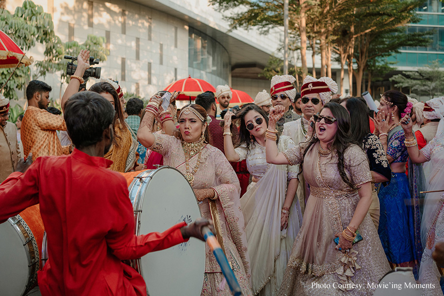 For the final day, everything had to be perfect and the team pulled all the stops to impress the couple and their loved ones. Harsh and Ashique share, “In our careful planning, we wove together a tapestry of uniqueness. Even though the groom wasn’t too keen on a chariot at first, the family’s deep-rooted traditions led us to create something special. Consequently, we created an innovative electronic chariot for the baraat. As the baraat procession began, the lively beats of the Nashik dhol and the energetic DJ on wheels set the tone, filling the air with an electric vibe!
