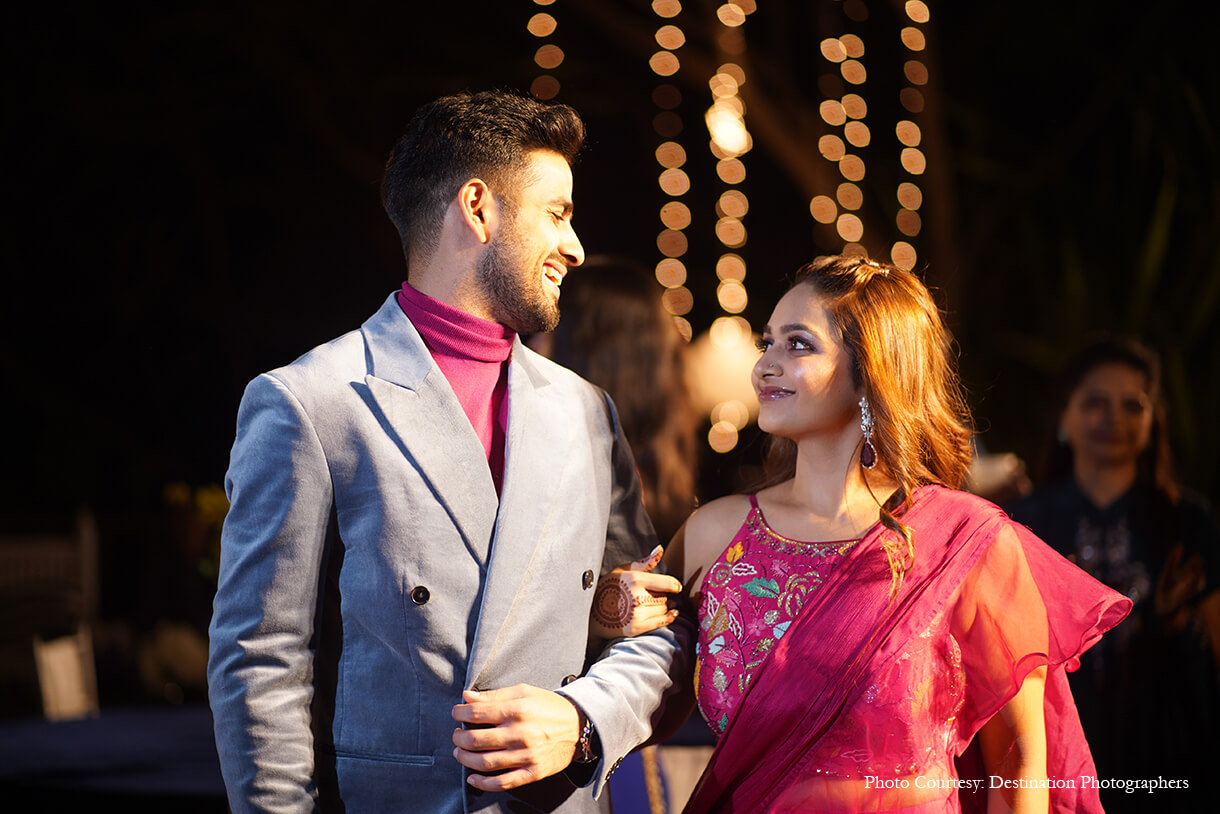 For a fun, laidback soiree to officially kick off the festivities, the couple hosted a chic poolside BBQ Party. The evening was lit up with warm lights and elegant decor, and filled with cheerful faces as everyone mingled and got to know each other while enjoying delicious food and unplugged music by artist Saurabh Nimbkar.