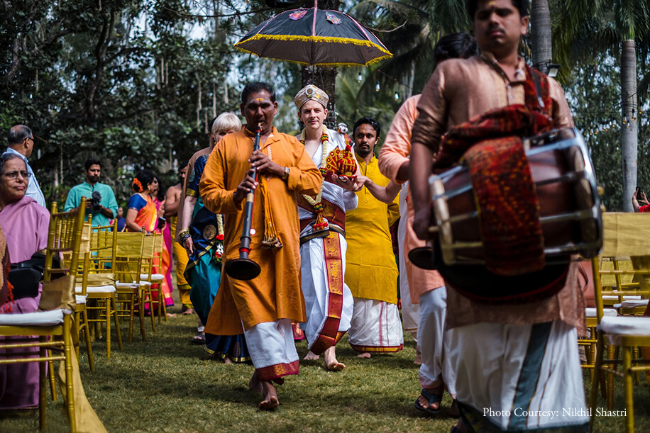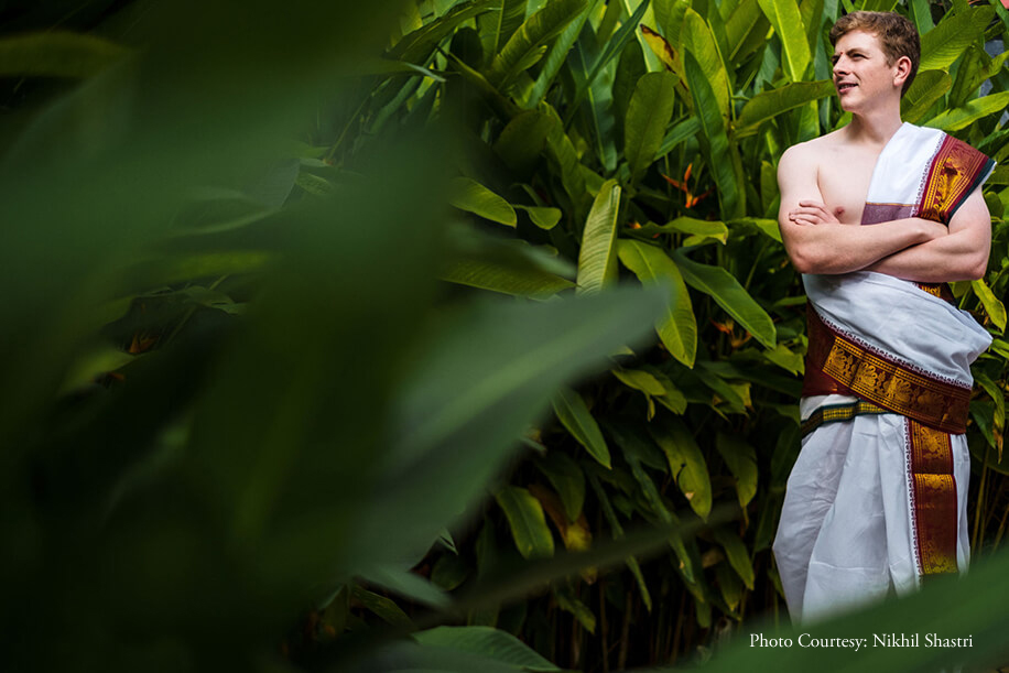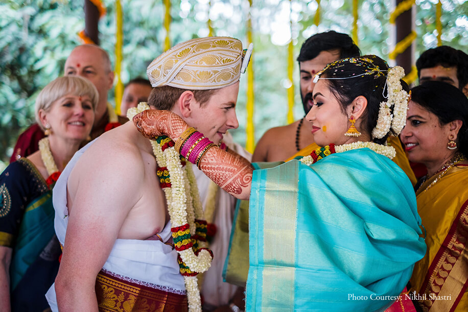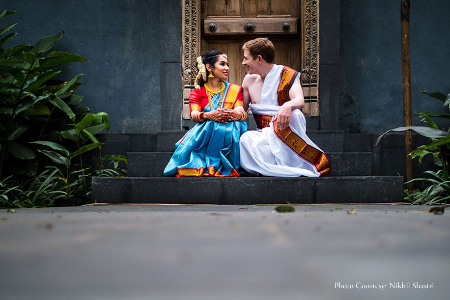 Dipped generously in simplicity and tradition, Bindhu Holavanahalli and Joseph John’s Bangalore wedding expressed their personalities. Surrounded by their loved ones Bindhu, an Indian based in Australia and Joe (Joseph), a Scott, tied the knot in a heartwarming South Indian ceremony photographed by WeddingSutra Favorite – Nikhil Shastri, who with their well-composed shots captured the true essence of their wedding.