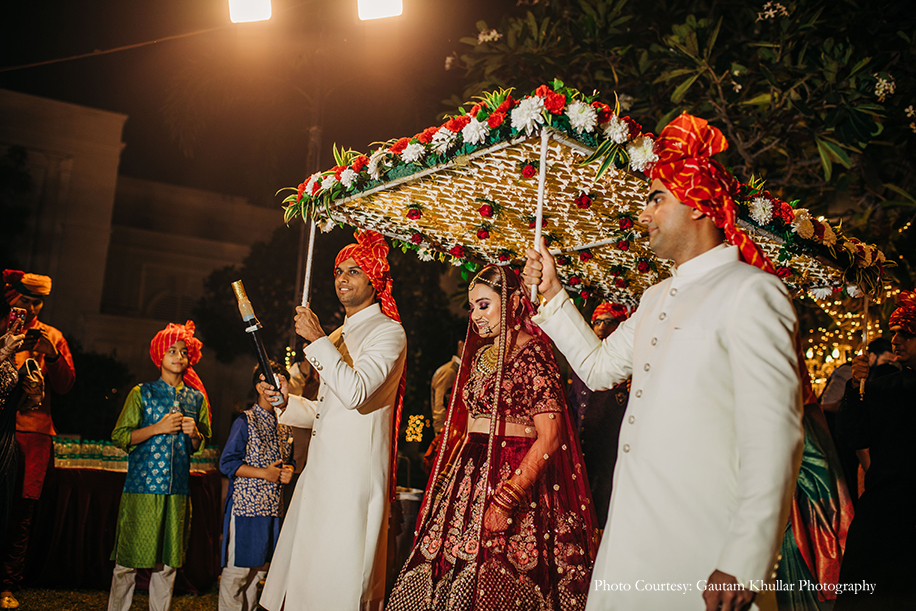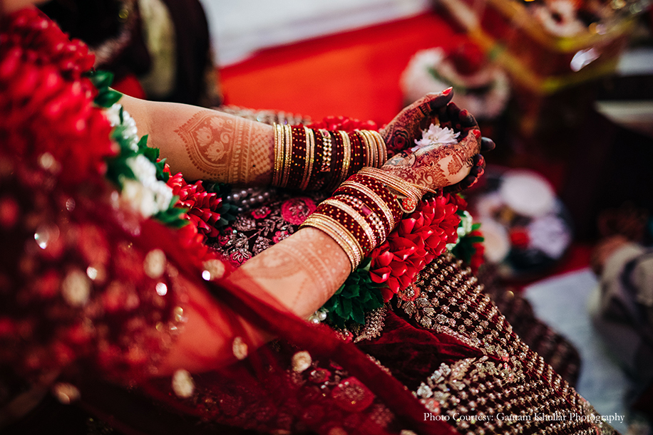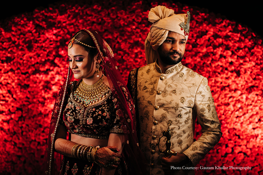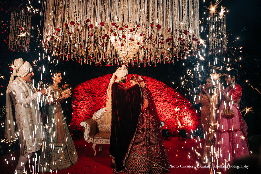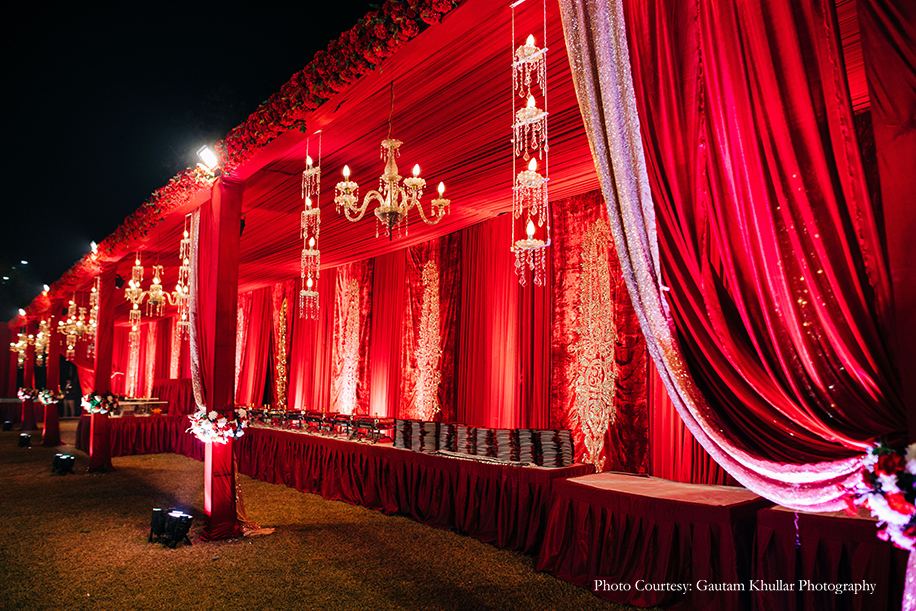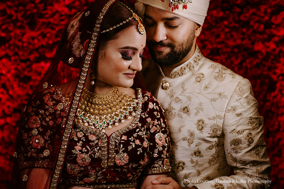 When it came to the wedding theme and planning, Charu had complete clarity about what she wanted. “For the wedding, I wanted to go with the classic crimson and gold theme, and it was executed perfectly by Shamsisons. My makeup artists, Sneha Charan and Ajay Maurya were brilliant and I would happily endorse them for all other brides. The team of Gautam Khullar Photography took beautiful pictures of our celebrations and it was a treat working with them.”