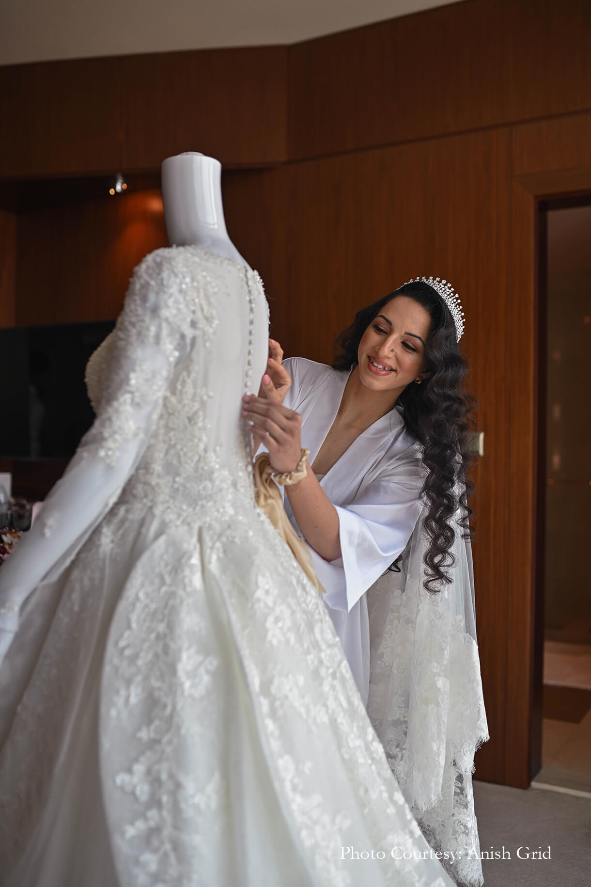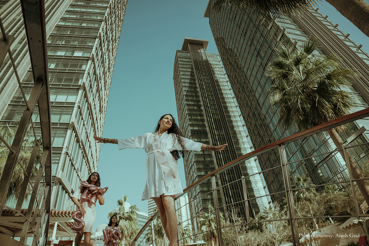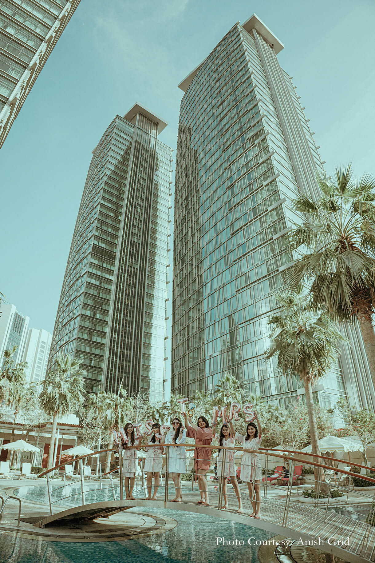 Planning a wedding in the gulf’s hottest destination is not an easy task, so the couple brought on board a wedding squad that helped make their vision a reality. Shoy by Anish Grid, their festive moments come alive in cinematic shots. From playful candids with her girls that take you along Cindy’s fun-filled journey as a bride to artistic shots of the couple against the city’s inimitable spirit, photographer Anish and his team did a spectacular job capturing the beauty of their wedding.