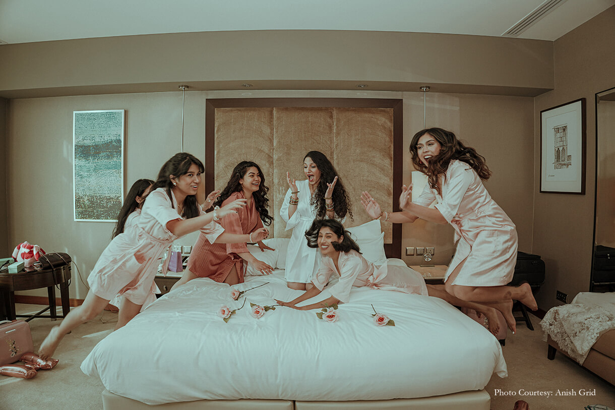 Surrounded by her gang of girls, Cindy immortalized her last few hours as a single woman with a fun-filled photoshoot on the wedding morning, sipping on glasses of champagne and having a gala time. As the morning progressed, their moments of love and friendship were layered with emotions as her friends saw her transform into a beautiful bride, stepping towards her new life.