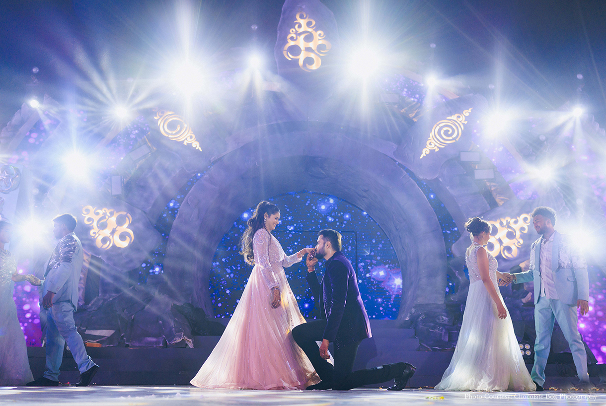 A dramatic sangeet, a globally-inspired carnival and a serene phera ceremony – this couple’s wedding was dynamic and energetic!