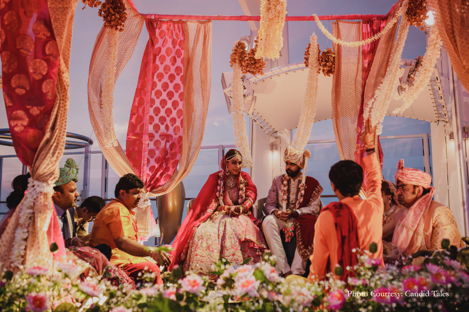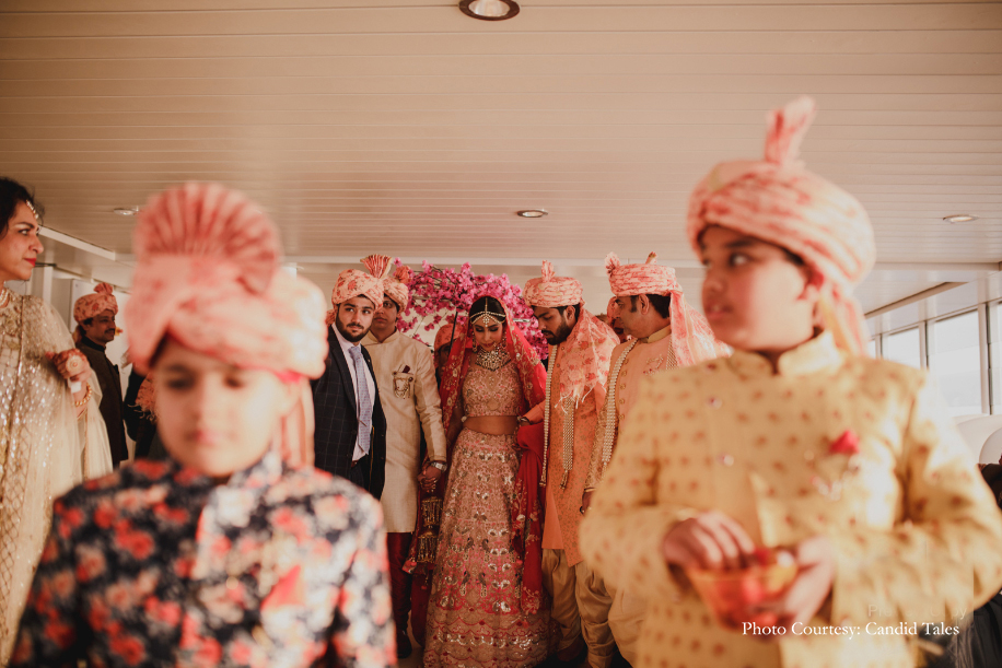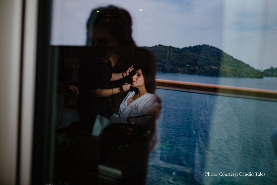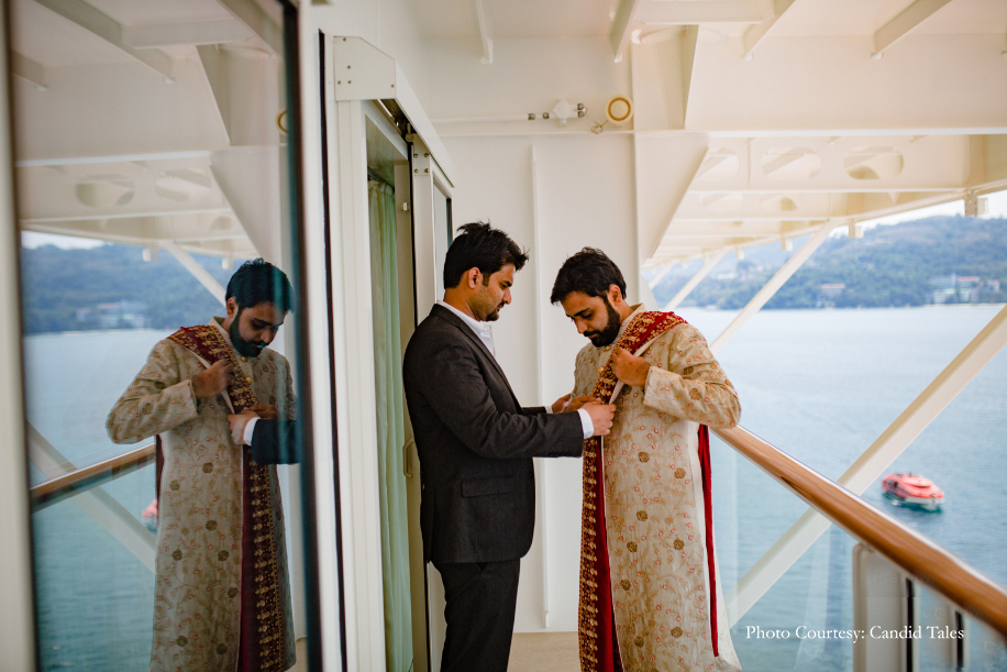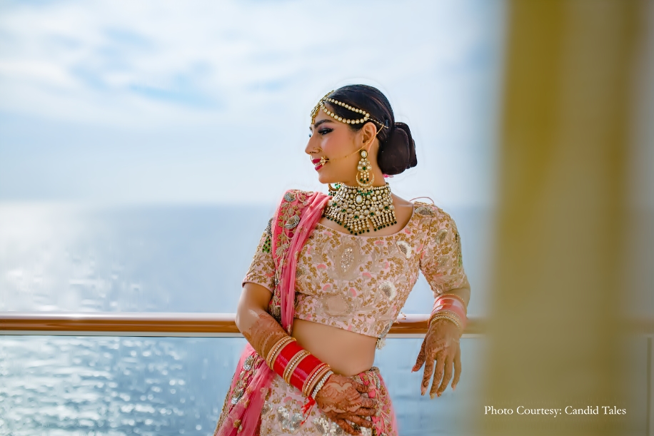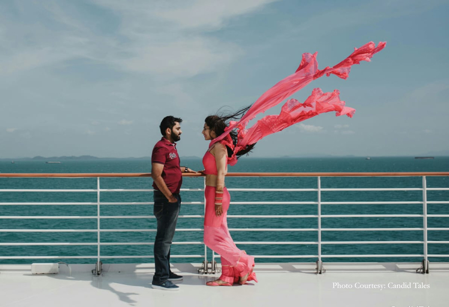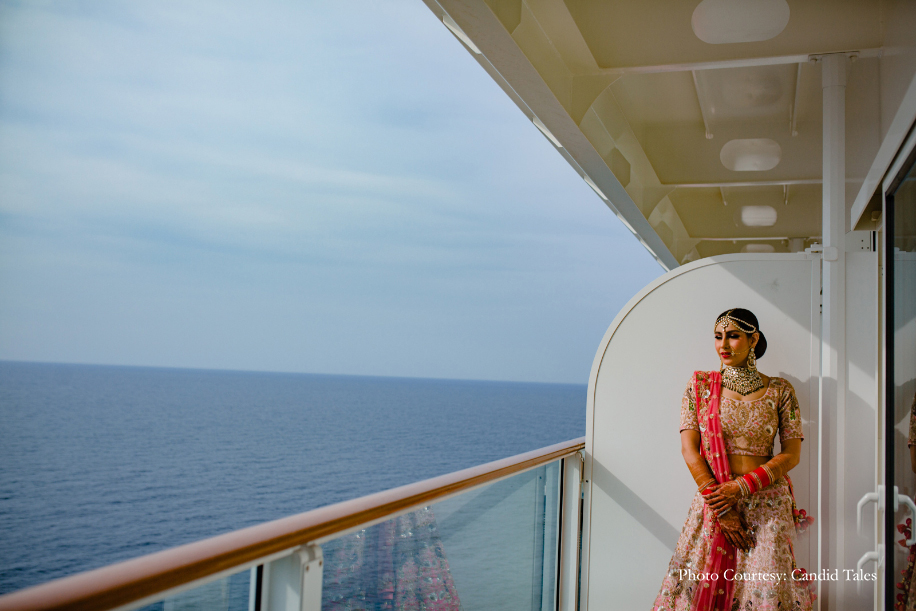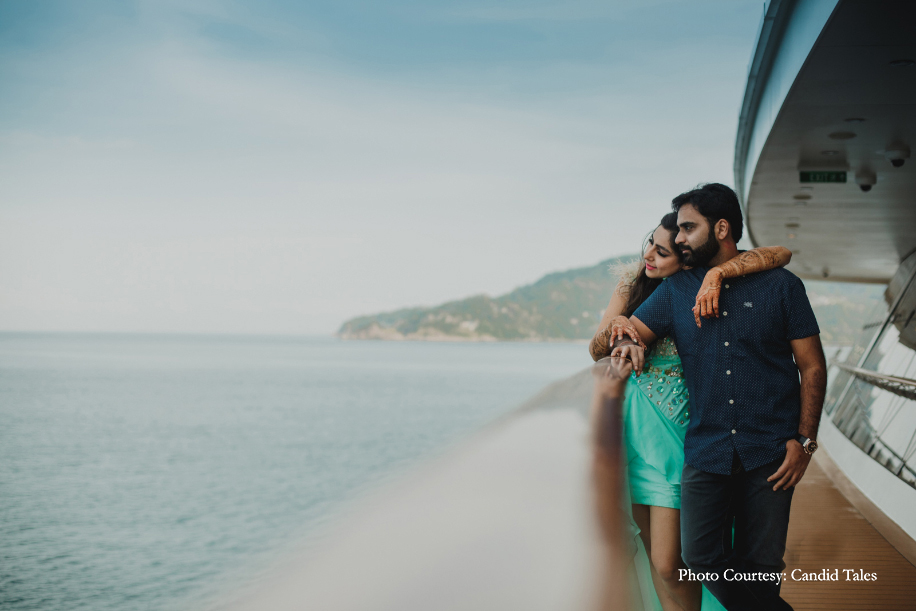After dating for a little over three years, the duo decided to tie the knot at one of the most offbeat destinations for a wedding – a cruise liner! They wanted to do something unique for their special day. With Foreign Wedding Planners, they explored options available in more than 13 countries and finally decided on one of the largest cruise liners – the Genting Dream Cruise as their wedding venue. The family hosted four-days of wedding celebrations for 220 guests as the ship cruised between Singapore-Malaysia-Thailand.