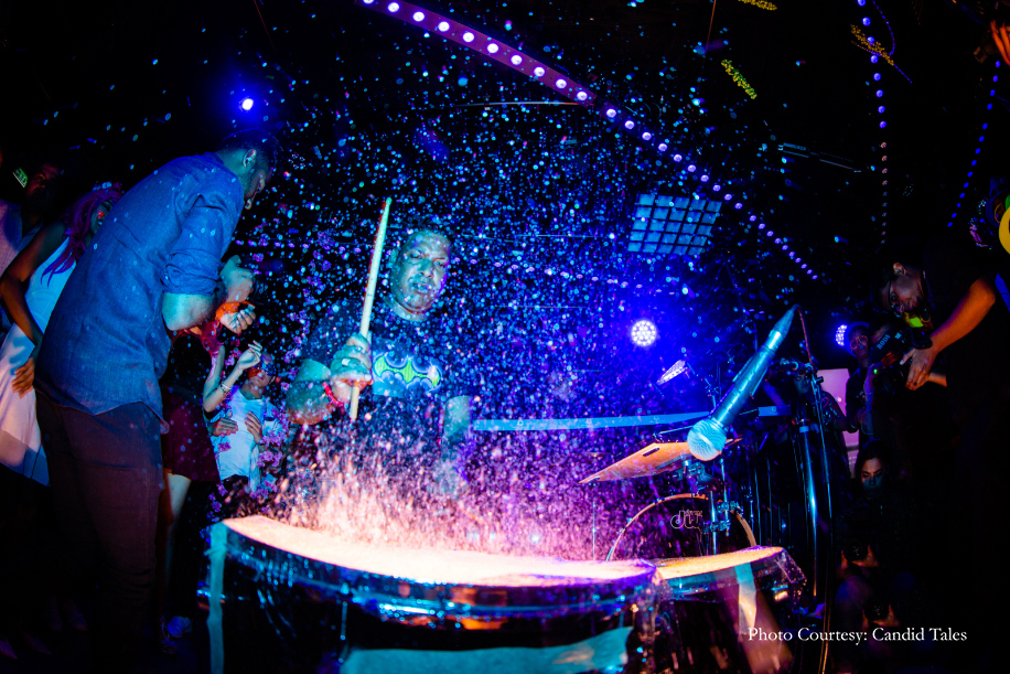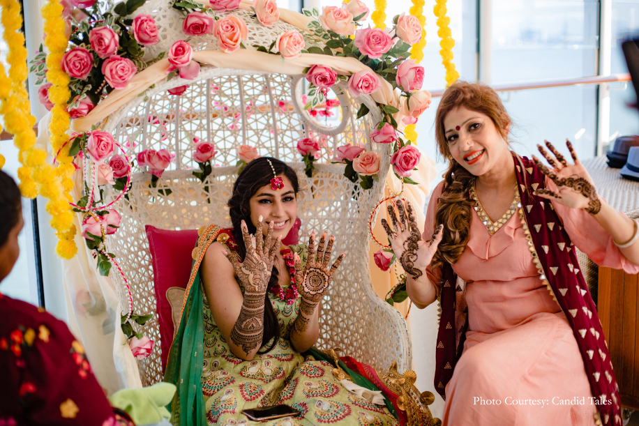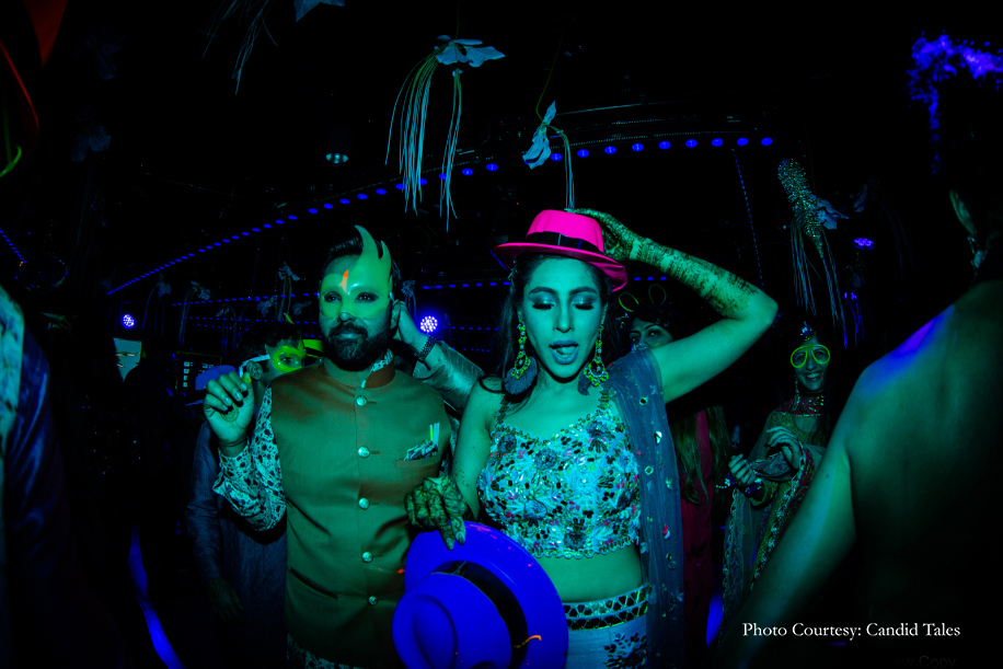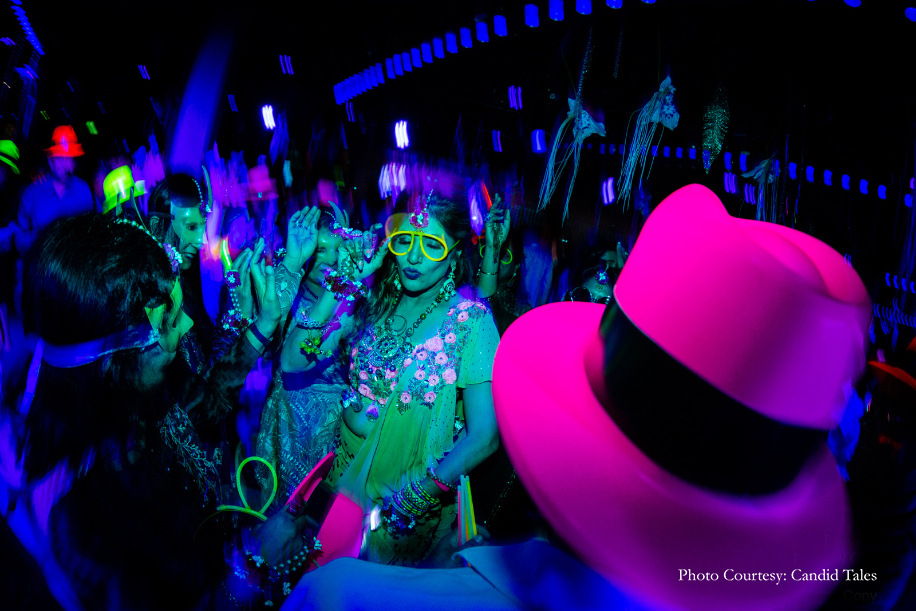 Devika and Akshat gave the beautiful age-old tradition of mehndi a modern-day twist by hosting a neon-themed party. The guests took over the dance floor, and bright neon lights and party accessories created a heady atmosphere in the room.