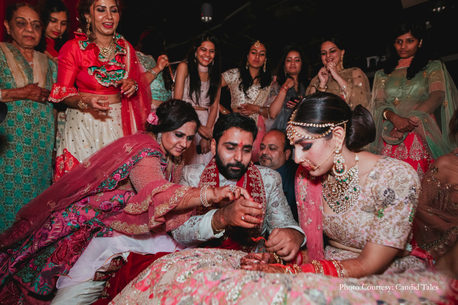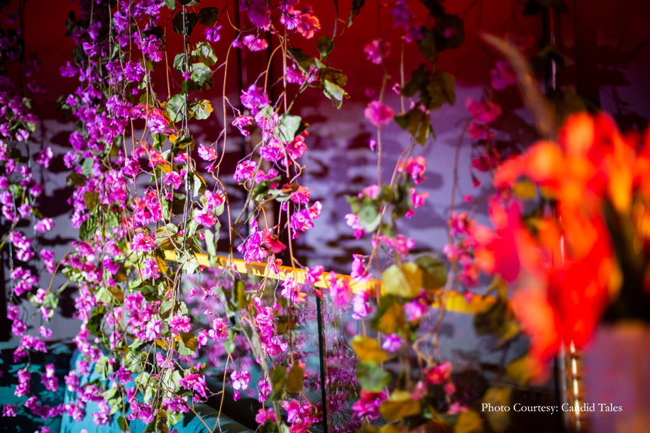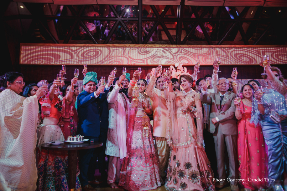 The wedding party bid adieu to the breathtaking views and headed inside to begin the spirited celebrations. The guests raised a toast to the newlywed couple during the ‘Happily-ever-after’ themed reception commemorating the beginning of Devika and Akshat’s life together.