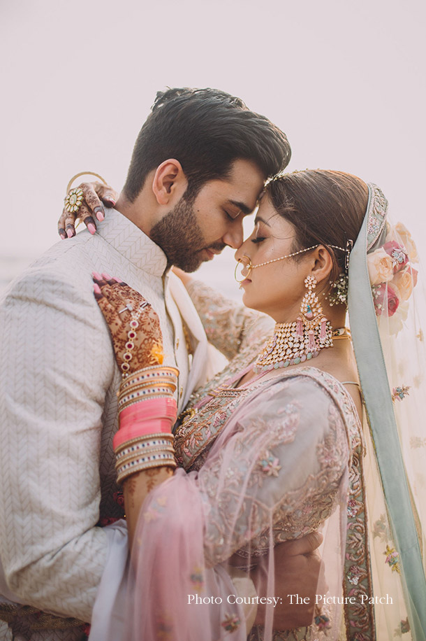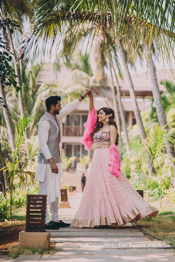 Swathed in hues of coral, pink and sea green, this couple’s Goan beachside wedding was a close-knit, scintillating affair.