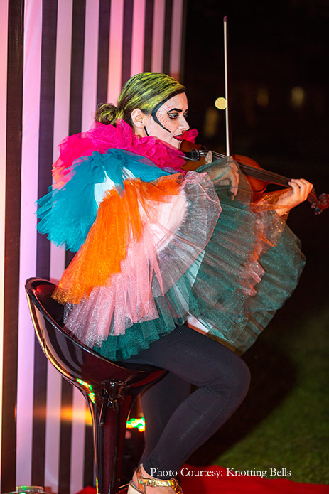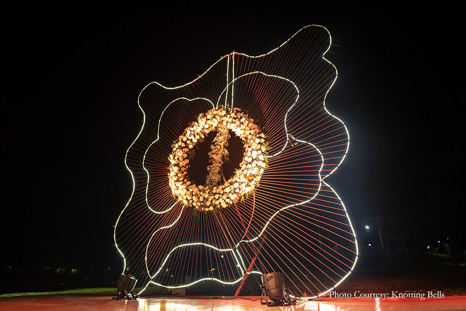 The 'Whimsical Cirque' themed sangeet at this wedding inspired awe with its daring aerial performances and fire dancers.