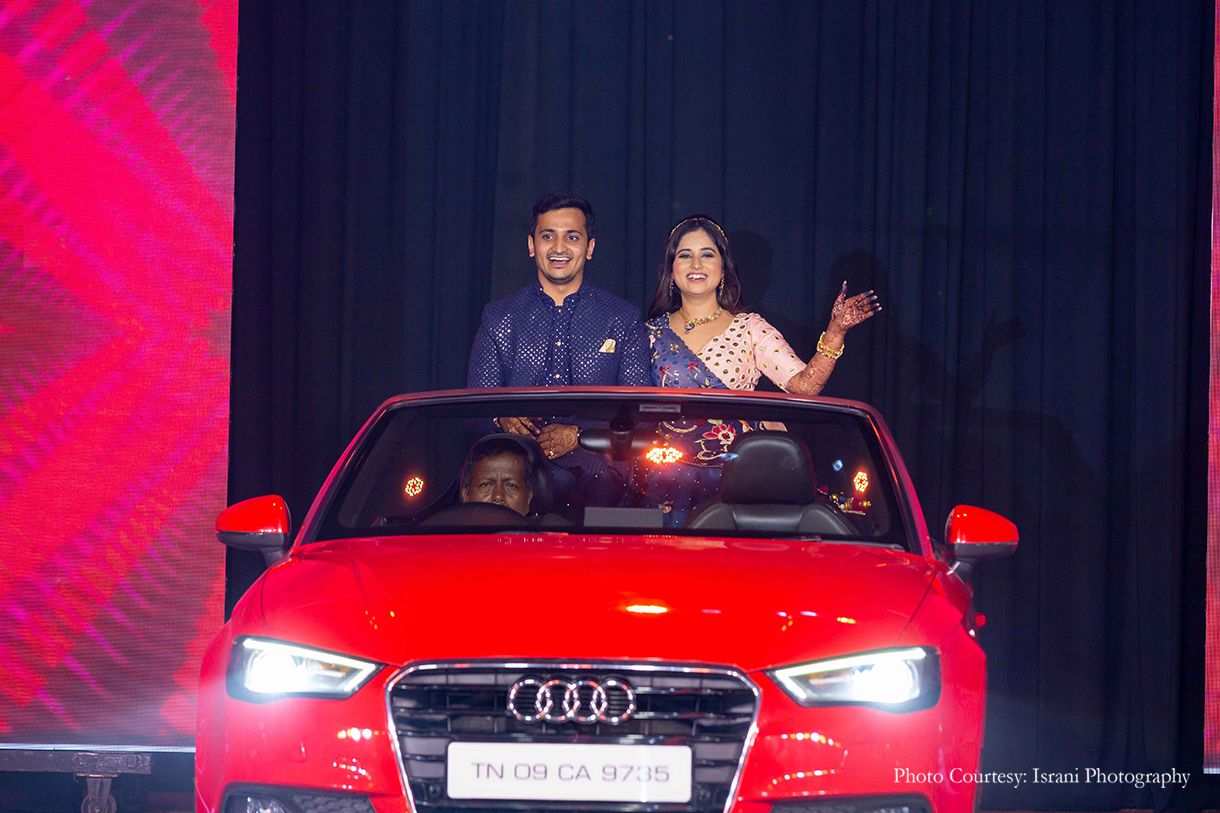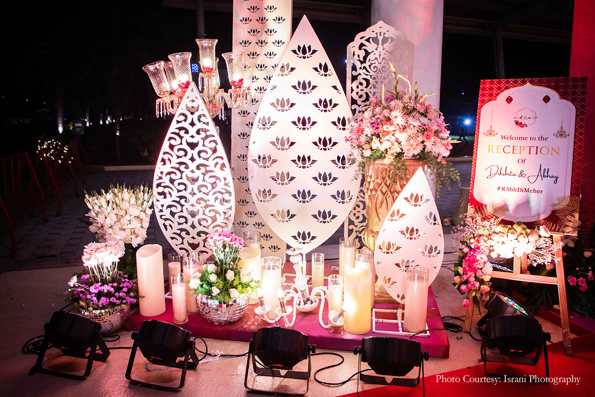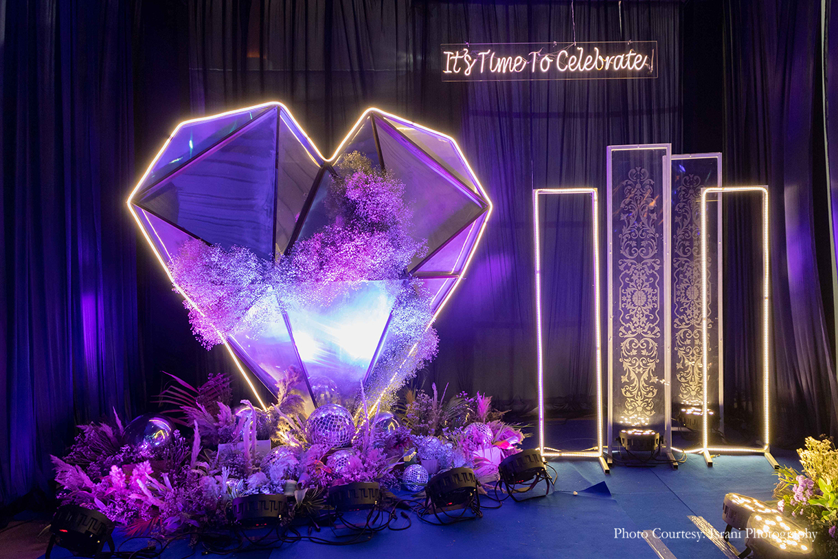 Himanshu shares, “The theme was ‘digitally yours’ and we did our best to amp up the glamour levels for the evening. After some amazing performances from the family, the couple entered in a stylish red car on stage in a grand fashion. Decorated with pampas grass, mirror work elements and LED lights – the venue exuded a dance-club-like vibe while staying elegant.”