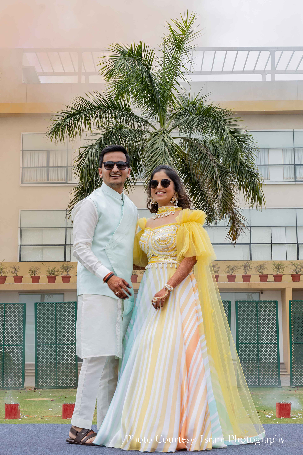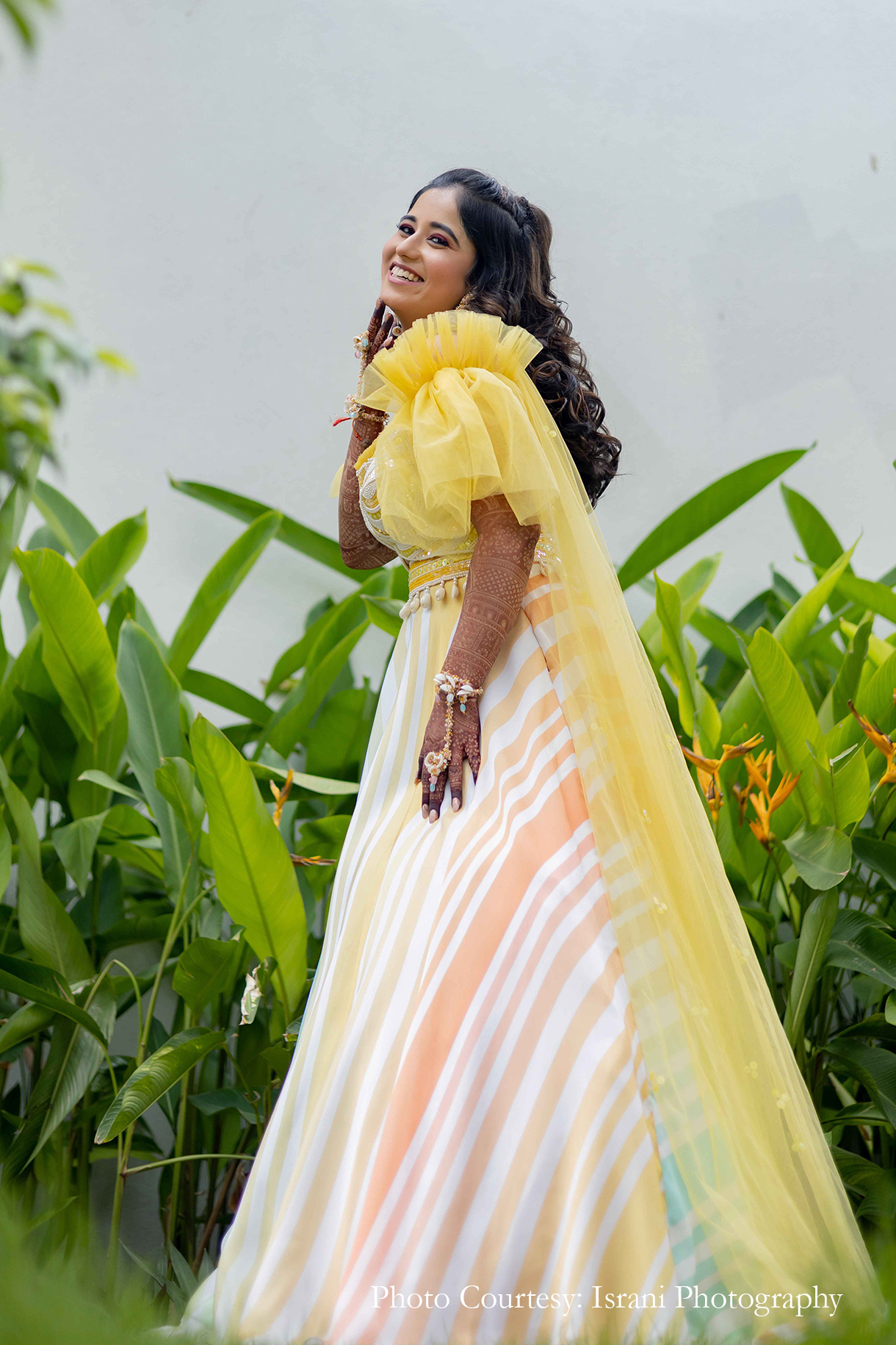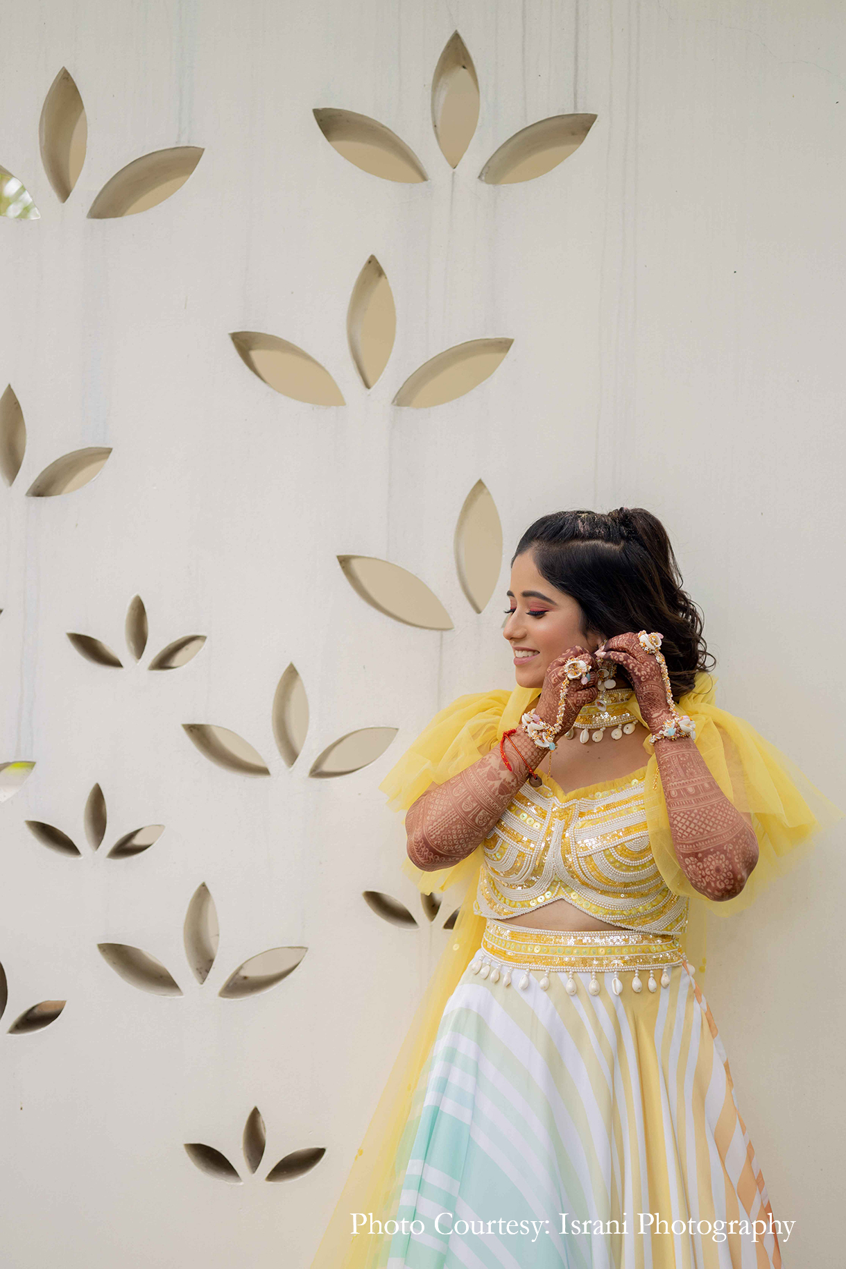Akansh B Jain from Weddingz By Mindz shares, “The first and as usual the most fun event was the haldi. The show started with a flash mob entry along with the colour crackers in the background. It was followed by engaging activities with the emcee. After this, a Dj based band took over the crowd while a floral-based haldi took place for the to-be-weds.