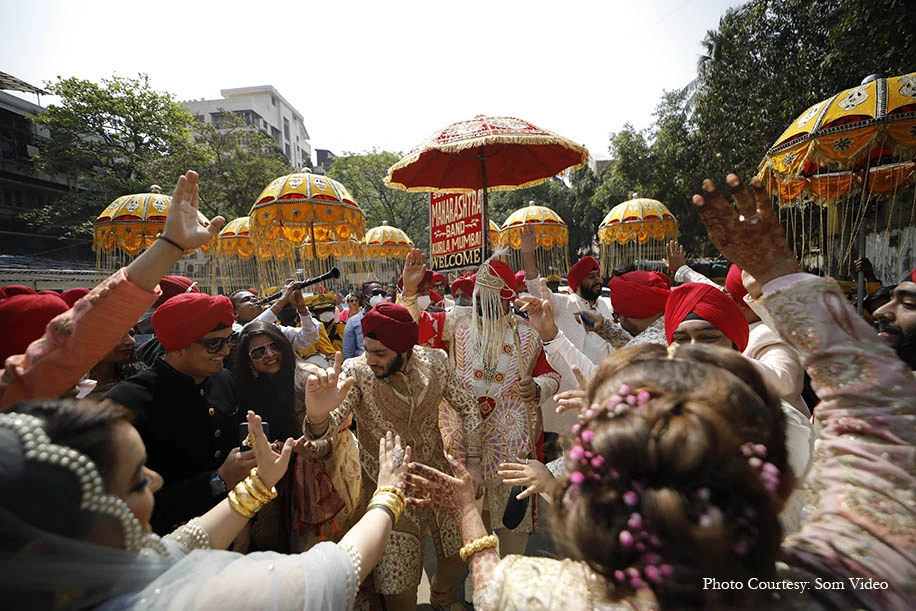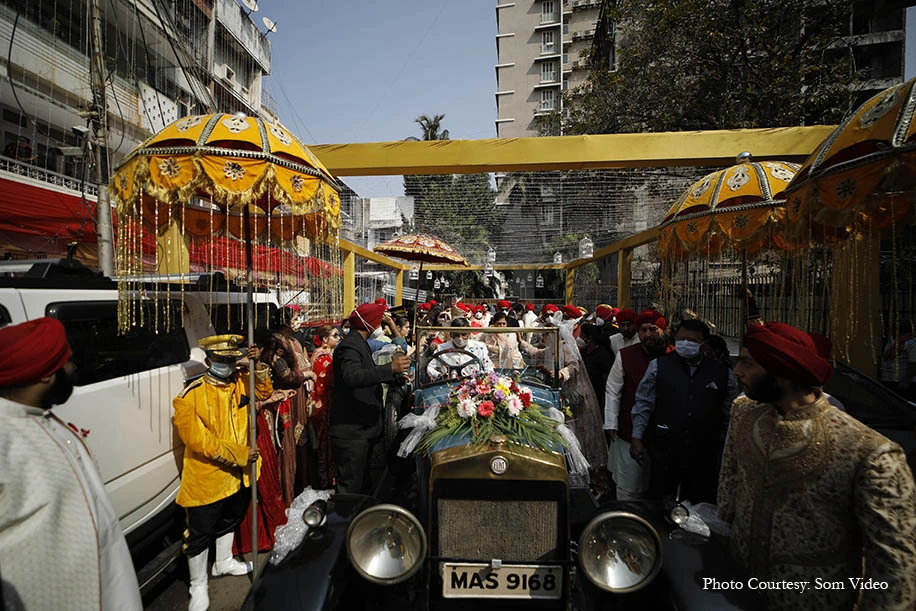 Nothing like a flamboyant Punjabi baraat to get you in the mood to groove! Replete with vintage cars, gidda, dhol beats and more, the groom’s baraat danced their way to the Santacruz Gurudwara, where the couple wed in a traditional Sikh ceremony.
