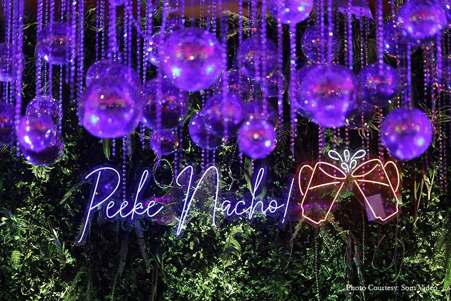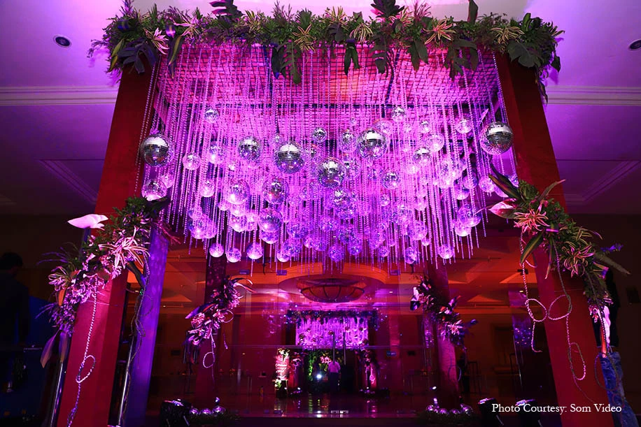 The celebrations kick-started with a glitzy Ring Ceremony at the grand JW Marriott Mumbai Juhu that mesmerized the guests and set a decadent tone for the upcoming revelries across the city. The splendid evening was bling central with crystals, disco balls, exotic flowers, neon signs and more. The exchange of rings was followed by an elegant cocktail dinner.