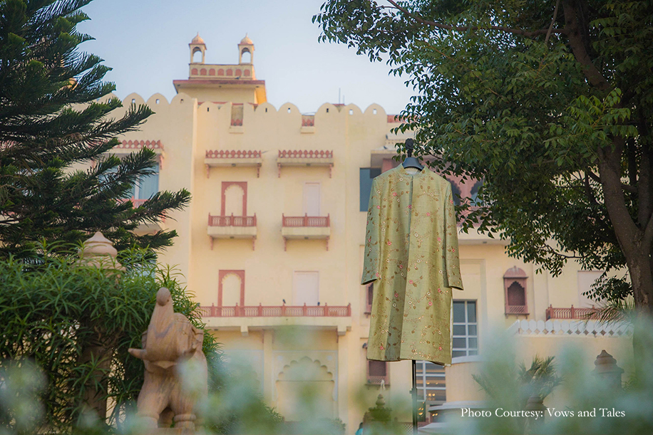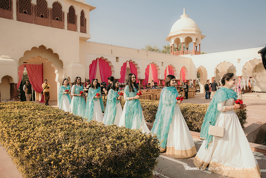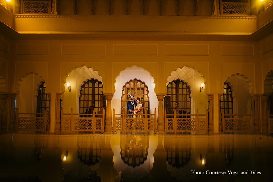 The festivities were split across the Le Meridien Jaipur Resort & Spa and the Heritage Retreat. The Sikh nuptials were hosted at a farmhouse close to the hotel and were followed by a picturesque Gujarati ceremony on the waterfront of Heritage Retreat.