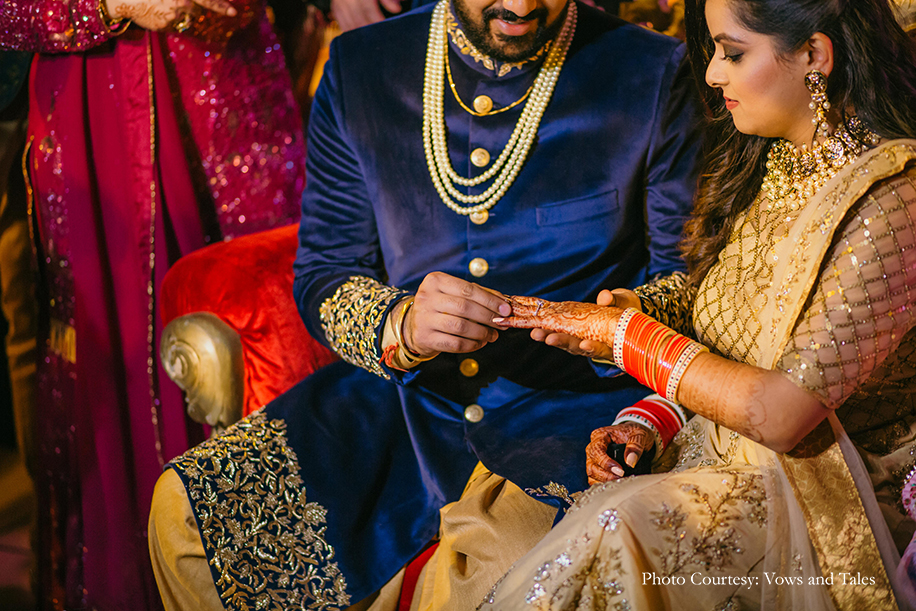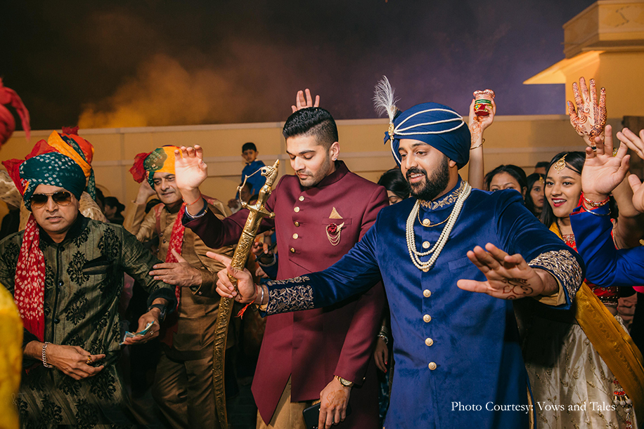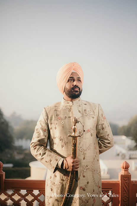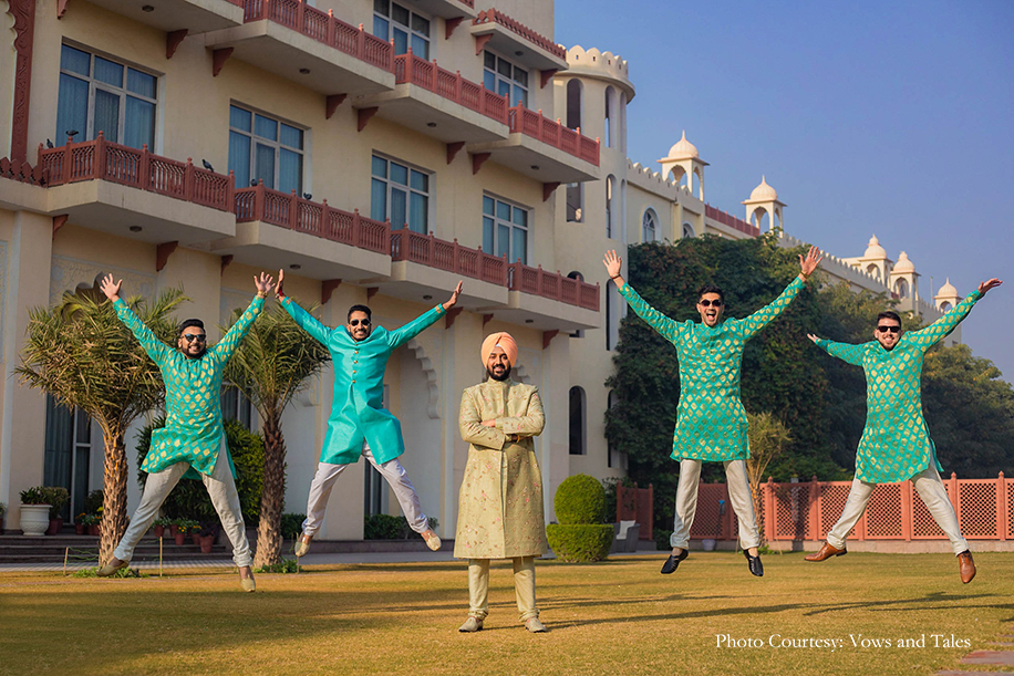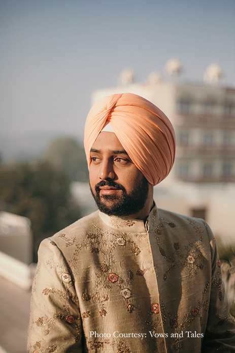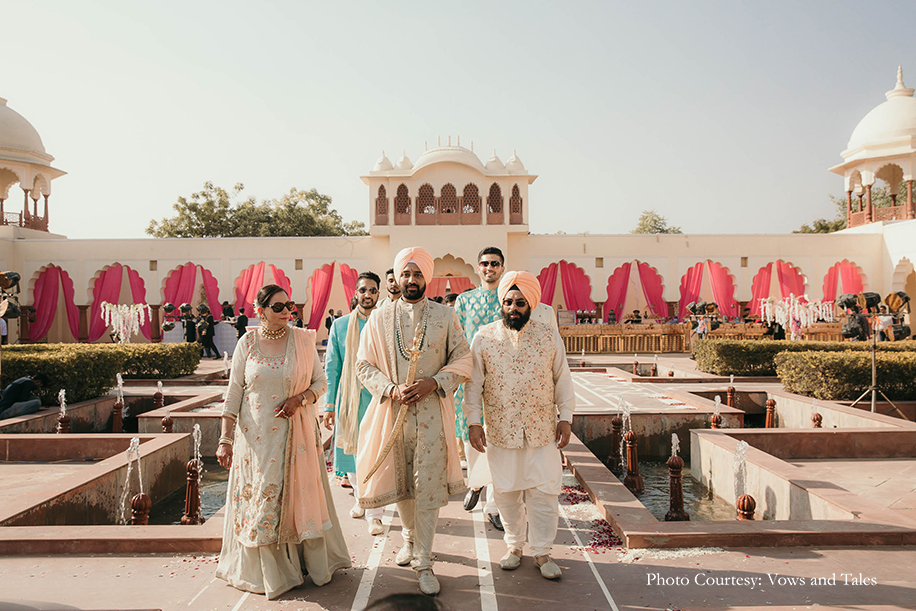Groom’s Outfits: Manyavar (Vidhi), Panjab Bespoke (Baraat and Wedding)