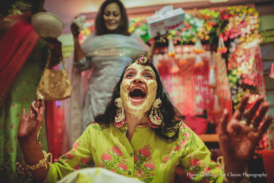 Disha made for a fun and quirky bride during her haldi ceremony as you can see in her candid captures by Say Cheeze Photography.
