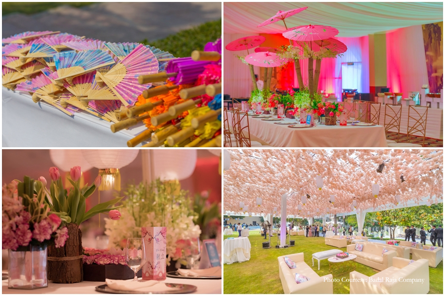 Cherry blossoms, oriental lanterns, and a Japanese pagoda struck the right chord at Divya and Karan's Japanese-inspired engagement which was followed by equally stylish wedding functions at the Taj Palace Hotel in New Delhi.