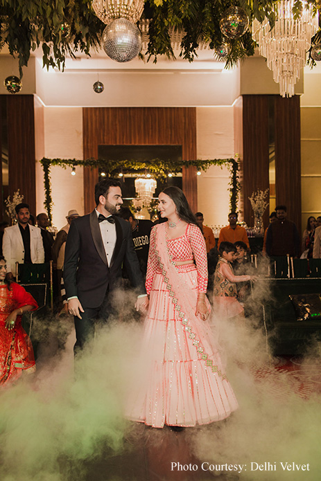 To plan their wedding, the couple chose One Point Wedding who ensured the couple had a gala time as they hosted the 100-150 guestlist wedding. Divya shares, “One Point Wedding played a pivotal role in orchestrating the wedding. Despite being based in Bangalore and the event taking place in Noida, they efficiently managed every aspect, from running errands to handling last-minute adjustments. We are immensely grateful for their meticulous attention to detail and unwavering support in ensuring that every minute element of the wedding was taken care of.” Designing the wedding was Decor By Komal who impressed the duo with their proactive approach. An impressed Divya shares, “We were deeply moved by the team at Decor By Komal’s thoughtful and accommodating approach. They attentively listened to every single requirement and consistently displayed a remarkable level of attention to detail. They were open to feedback and discussed progress at every stage.”