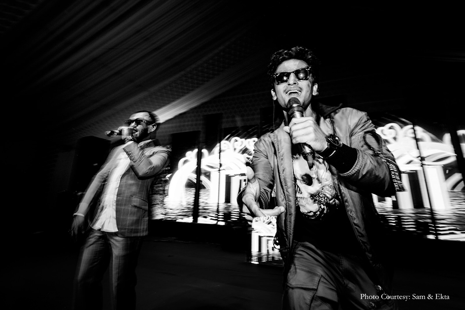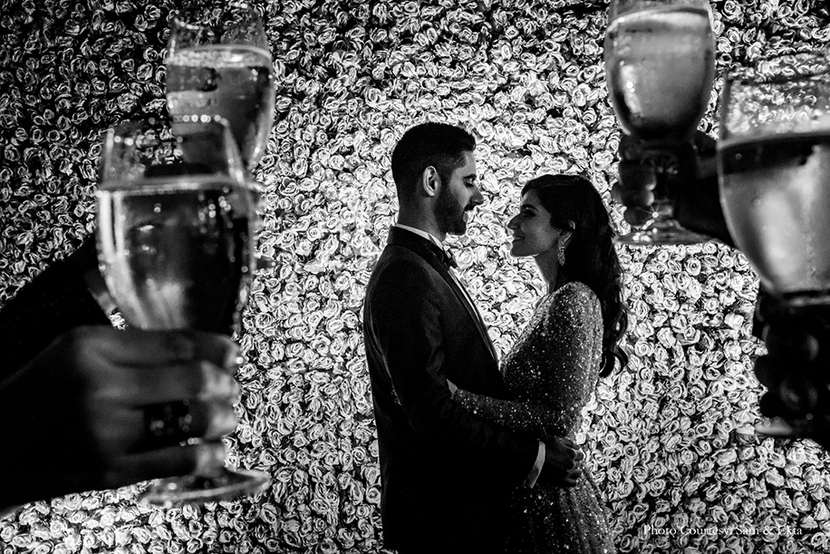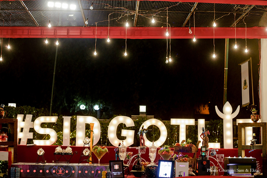 “Our cocktail soiree was comparatively a more formal event and also served as our engagement ceremony. The dress code for the night was gowns and tuxedos. We had the popular band Doorbeen perform English and Punjabi retro songs. After a few rounds of drinks, the night became a fun party in which our guests danced till they dropped to the beats spun by the DJ.”