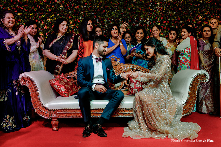 “Sid and I were travelling through Rome, Italy, when he proposed at a terrace overlooking St. Peter’s Basilica. Sid had planned this surprise for me, with a violinist playing our favourite song ‘I’m Yours’ by Jason Mraz in the background. I, too, had been carrying a ring in my wallet for months and was ready to slide it on his finger. So we both walked out of that terrace with rings on our fingers.”