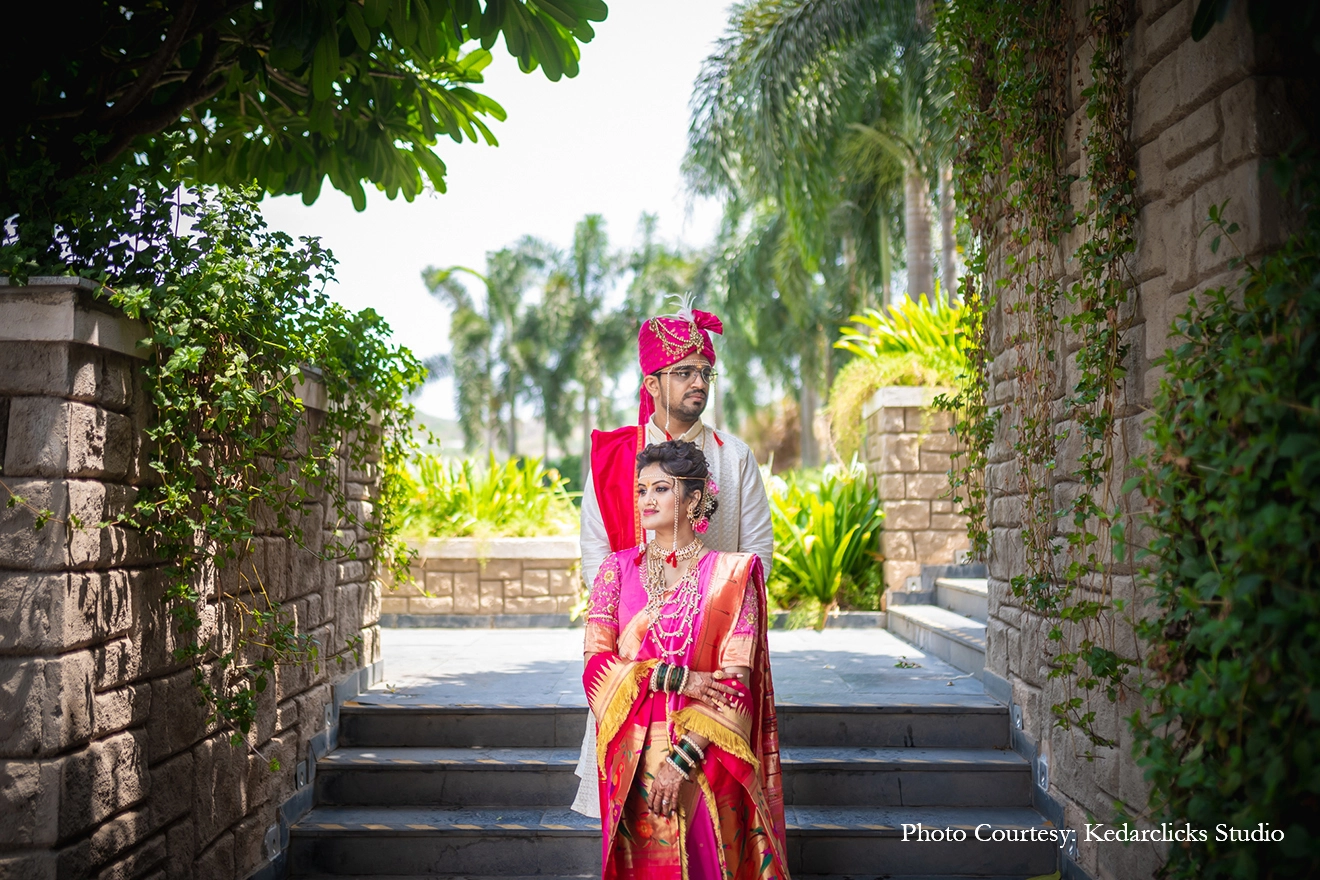 Flanked by the stark beauty of the Sahyadri mountains, Physiotherapist Dr. Priyanka Dharghalkar and Orthopedic specialist Dr. Mihir Malik’s Pune wedding was an intimate celebration of love and family. Planned to perfection by WeddingSutra Favorite – The Planning Paradise, the simplistic beauty and wholesome moments of their intimate festivities are sure to warm your hearts.