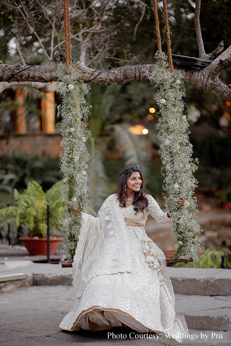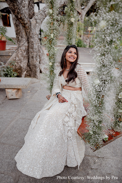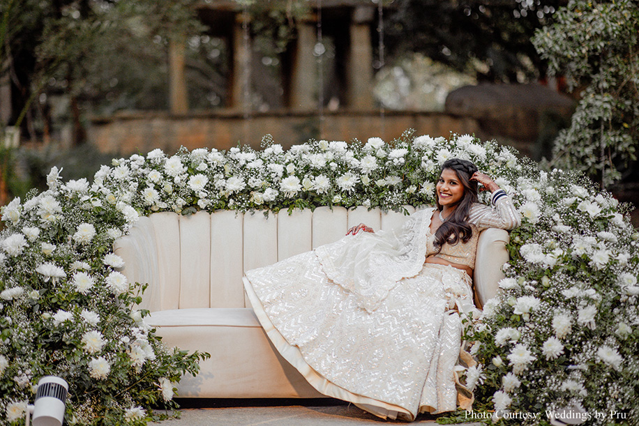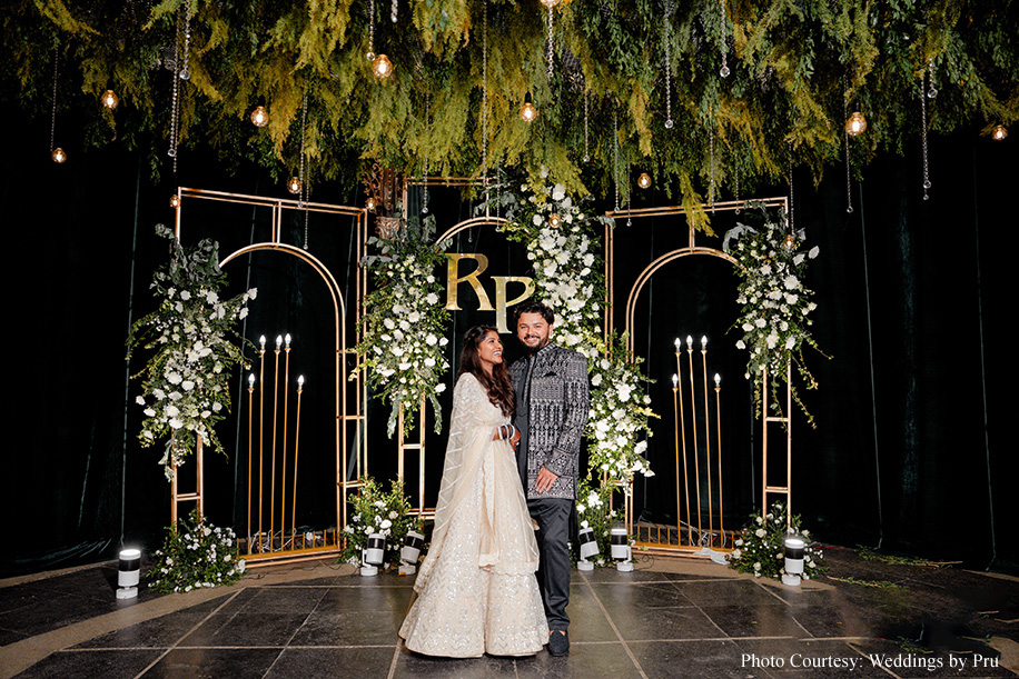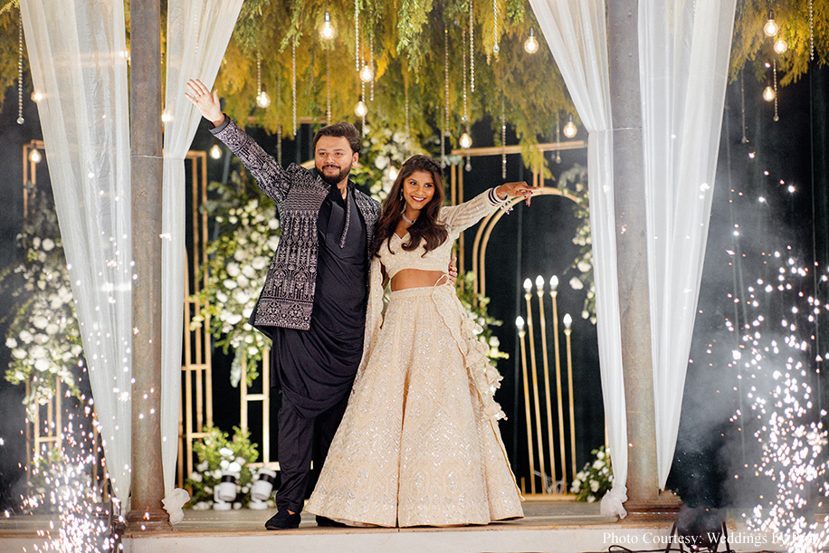 Brimming with baby’s breath, lush foliage, billowing white drapes, and dreamy lights, the Sangeet night was as enchanting as could be! Enrobed in shimmering ensembles of white and black, Raksha and Parth looked “made for each other” as they danced amidst sparkling fireworks. Filled with musical melodies and dance performances, the evening was one of love, beauty, and enjoyment.
