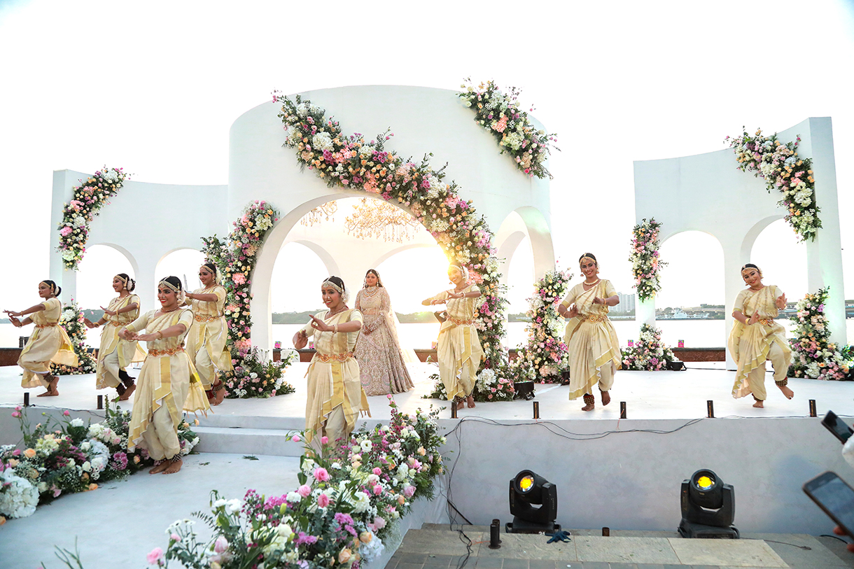 When a wedding designer becomes the bride, you know the celebration is going to be nothing short of spectacular—and Drishti’s wedding to Mohit was exactly that! Designed with flair by WeddingSutra Favorite – Watermark Weddings, every moment of their nuptials reflected an emotional depth and immersive experience. From a traditional welcome to a celestial-themed Sangeet and a romantic pastel-hued pheras, their multi-day celebration at Grand Hyatt Kochi Bolgatty unfolded like a storybook brought to life.