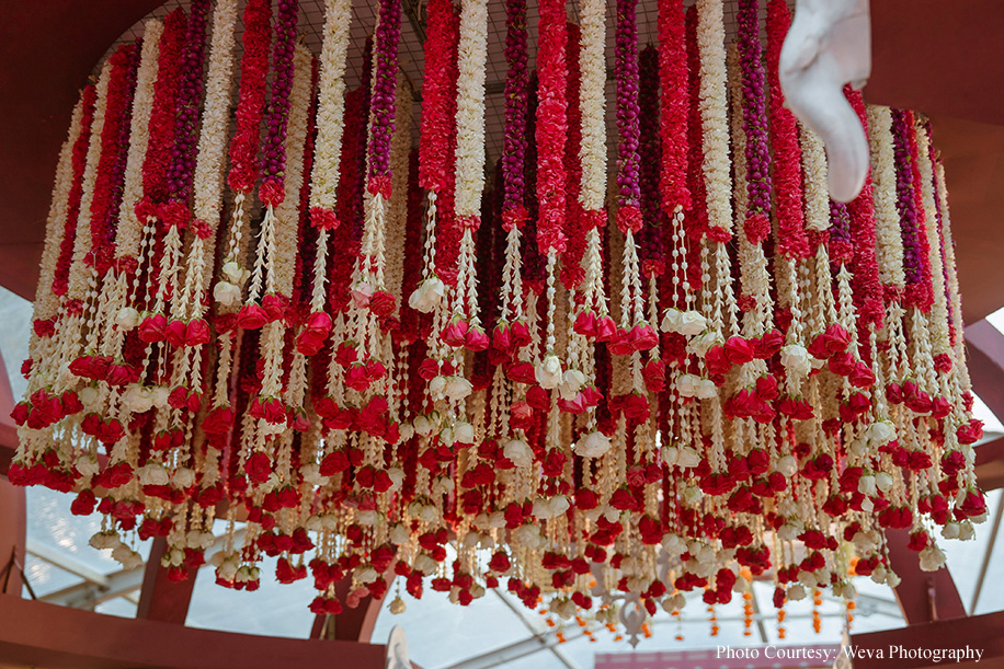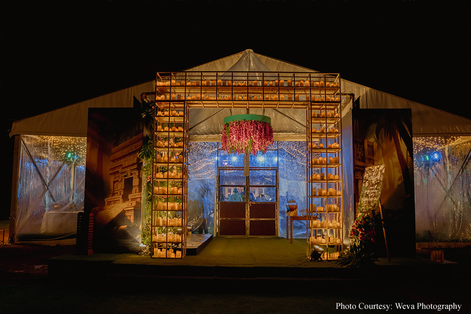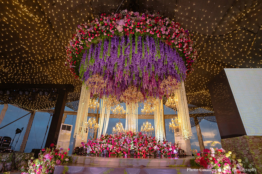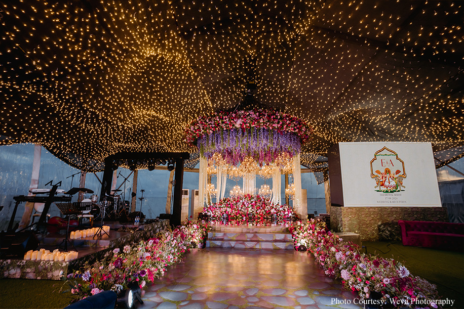 The festivities came to an end with a Shangri-La-themed Reception soiree, imagined with wavy fairy lights, pastel flowers, a surreal altar, and whimsical furniture. The couple took their official vows at the altar as per the bride’s customs, followed by the couple’s first dance, the mother-son dance, and finally an impromptu dance by all the father-daughter and mother-son duos among the guests. The evening included a gourmet spread of International delicacies, while Siddharth Menon and Orfeo Quintet entertained the guests with their music and energy.