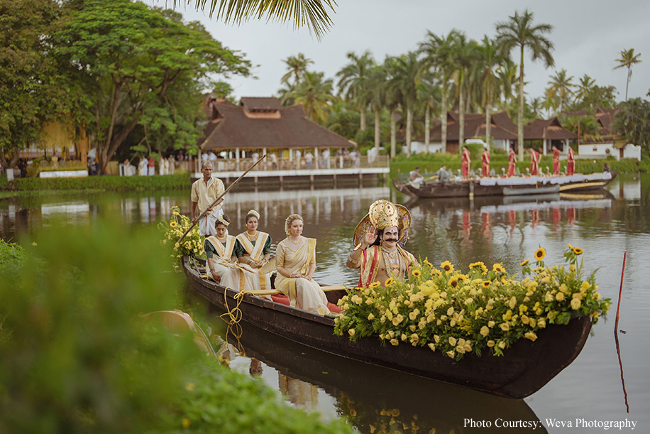 Framed by tranquil backwaters, this cross-cultural wedding came alive with the culture and verdant beauty of Kerala!