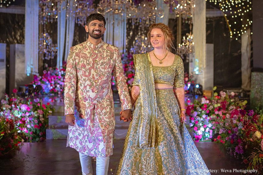 Bride’s Outfits: Kalyan Silks (Haldi, Wedding), Sabyasachi Mukherjee (Sangeet), Manish Malhotra (Reception)