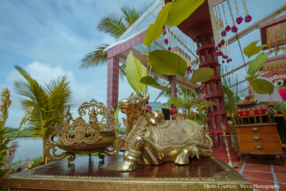 The couple’s destination unfolded amidst the tropical charm and stunning vistas of Kumarakom Lake Resort, a venue that preserves the heritage of Kerala through its architecture, landscape, backwaters, and authentic Kerala cuisines. The Team of Rainmaker Signature Weddings was tasked with bringing their dream wedding to life.