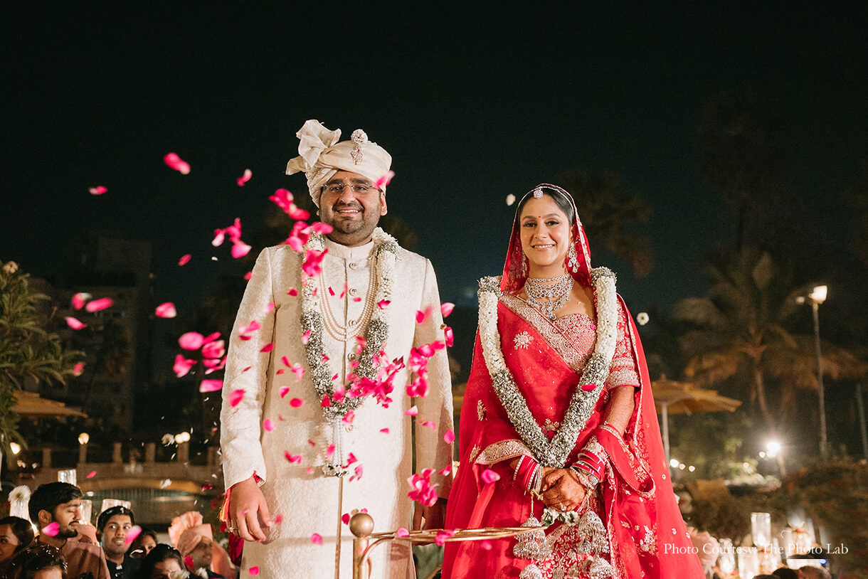 F&B entrepreneurs Esha Kayan and Pranav Mehra’s January wedding at Taj Lands End, Mumbai reflected their love for subtle details and tradition. Honoring their precious family members and reflecting their love for minimalism, their wedding was planned by WeddingSutra Favorite – Castles and Coasters.