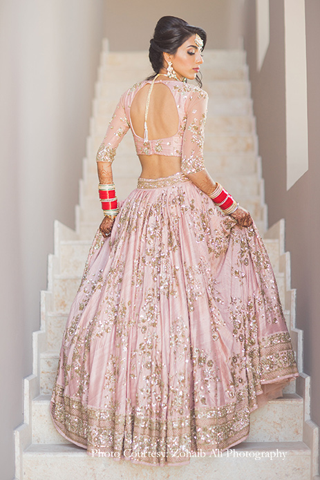 For the occasion, she chose a delicate blush lehenga by Astha Narang while Akaash wore an intricate ensemble in mint and blush by Study by Janak.