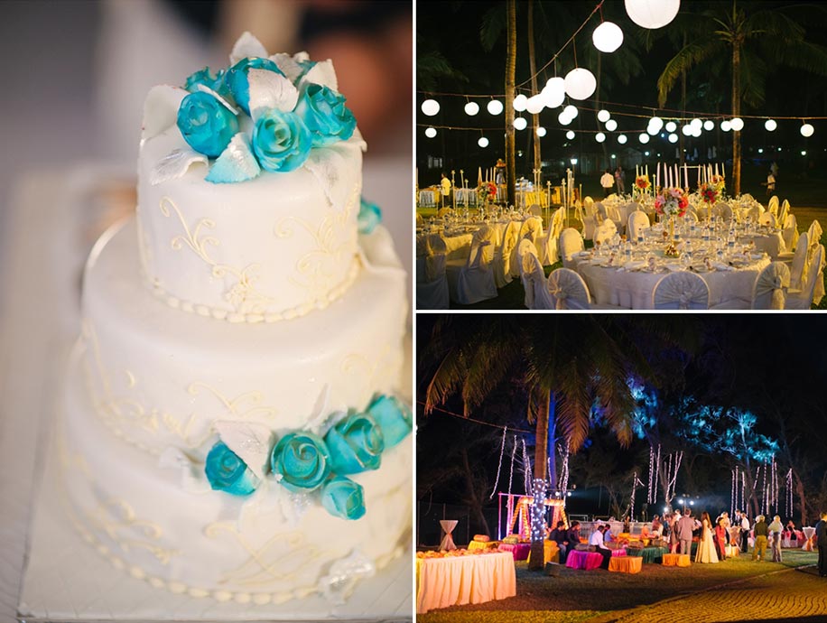 The reception took place after the wedding rituals were over, and saw some heartfelt speeches from friends and family members alongside champagne toasts. Everyone tucked into a delicious range of food which they relished in the cool Goan air with its pleasant nip.