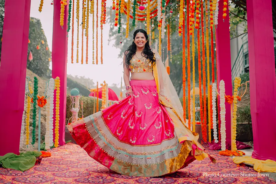 Bride’s Outfits: Aum (Mehendi), Sulakshana Monga (Reception)