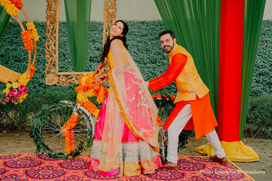 The four events saw myriad activities, décor themes and festivities, which were captured by the talented photography team of Shutterdown. The bride shares, “A family friend of ours recommended them to us and it was by far the best decision we made. Lakshya and his team were unbelievable and they got to know us personally to ensure we felt comfortable. The pictures they captured and the video they made are pure perfection.