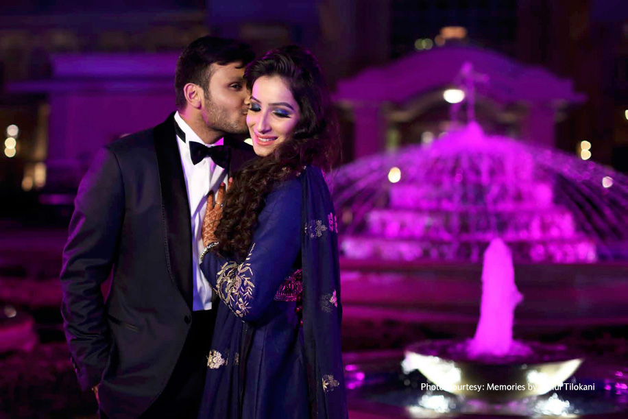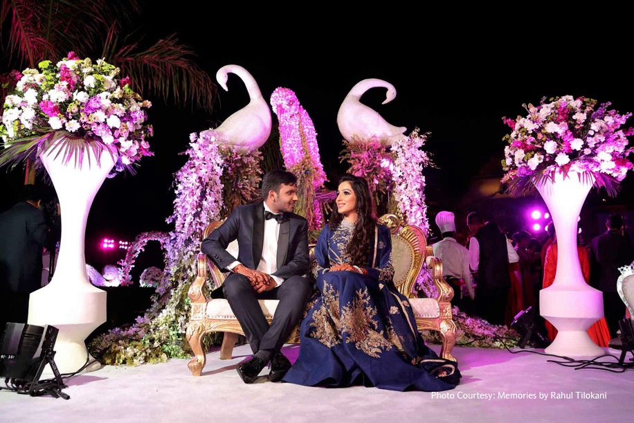 “After a little break and a chance to rest and change we had come down to an incredible setup created just for us for a grand ring ceremony followed by a musical night by singer Rahul Vaidya. The ring ceremony was also held outdoors in the evening and the floral arrangements were outstanding.” For this function, Harshika wore a royal blue outfit by Alok and Harsh and accessorized it with diamond jewellery while Ronak wore a suit by Tom Ford. Harshika’s makeup accentuated her beautiful features and she looked every bit of a gorgeous bride with her handsome groom.