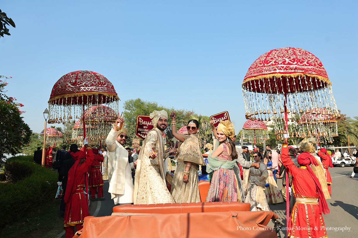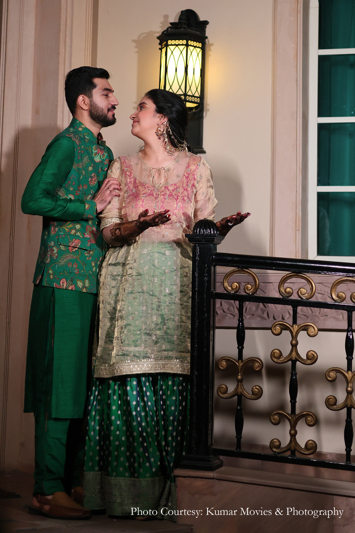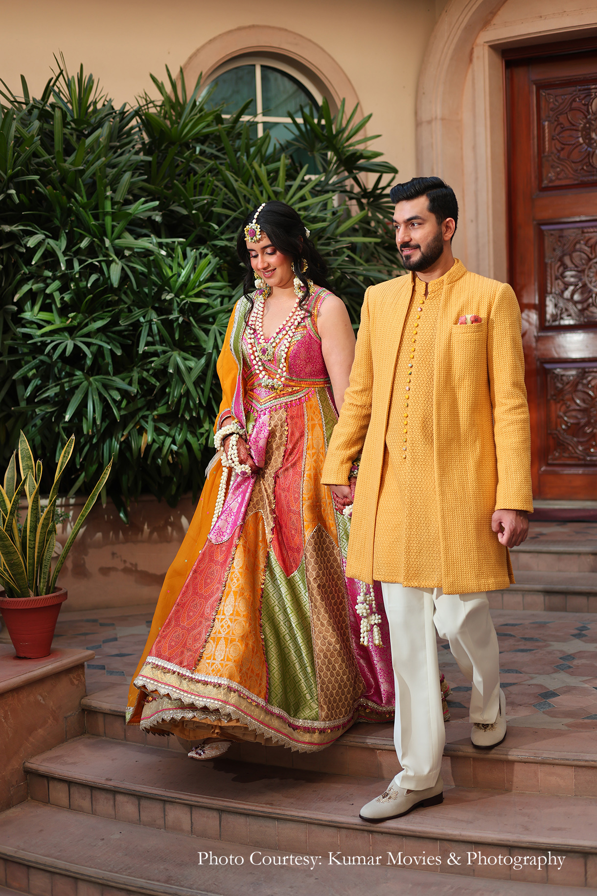 Groom’s Outfits: Arjan Dugal (Haldi and Mehndi), Archana Jaju (Devgun Pooja), House of Nasir (Wedding), Amaaré (Reception), Unit by Rajat Suri (Sangeet, Farewell Brunch)